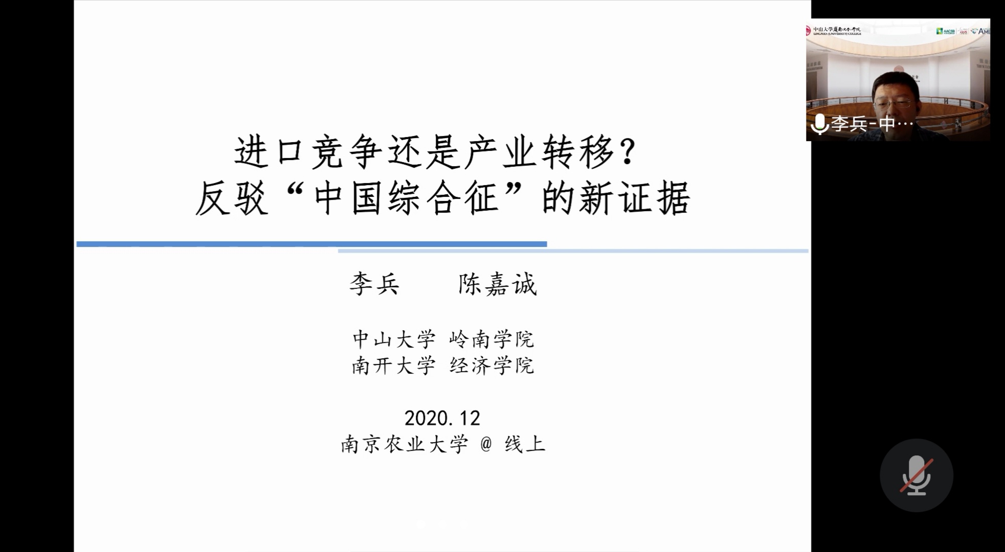 2020年12月3日上午,中山大学岭南学院李兵副教授为beat365官网师生带来了精彩的学术报告。此次学术报告主要围绕“进口竞争还是产业转移?—反驳中国综合征的新证据”以及“国际贸易研究中的工具变量及其应用”两个主题展开。学院师生代表50余人参加了此次讲座,报告会由田曦教授主持。
