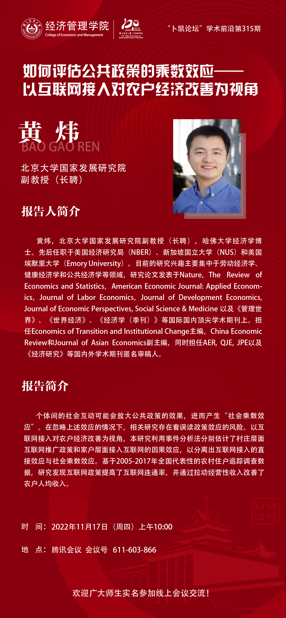报告人:黄炜北京大学国家发展研究院副教授