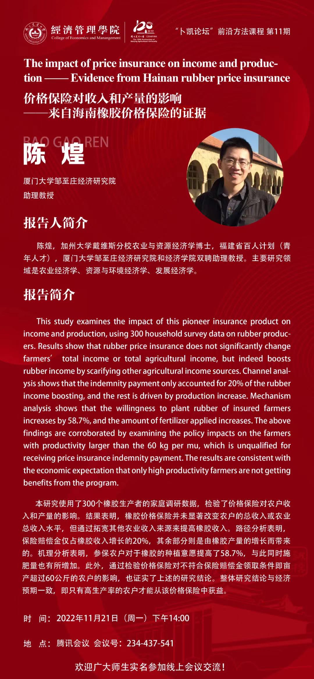 报告人:陈煌厦门大学邹至庄经济研究院助理教授