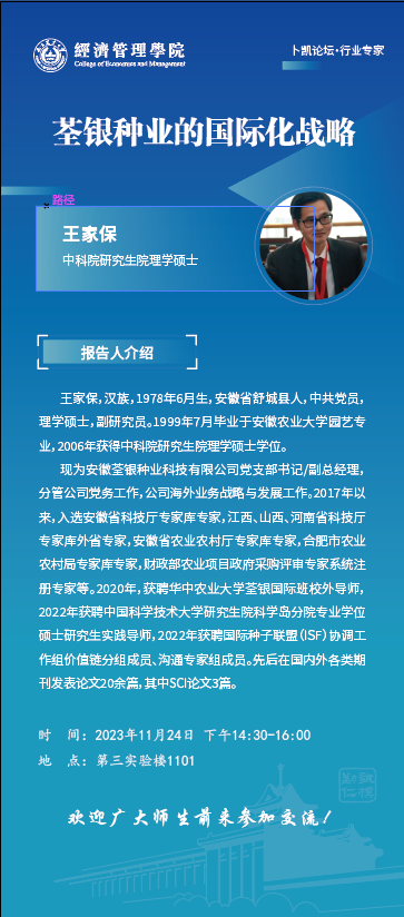 安徽荃银种业科技有限公司王家保副总经理应邀为beat365官网师生做行业报告