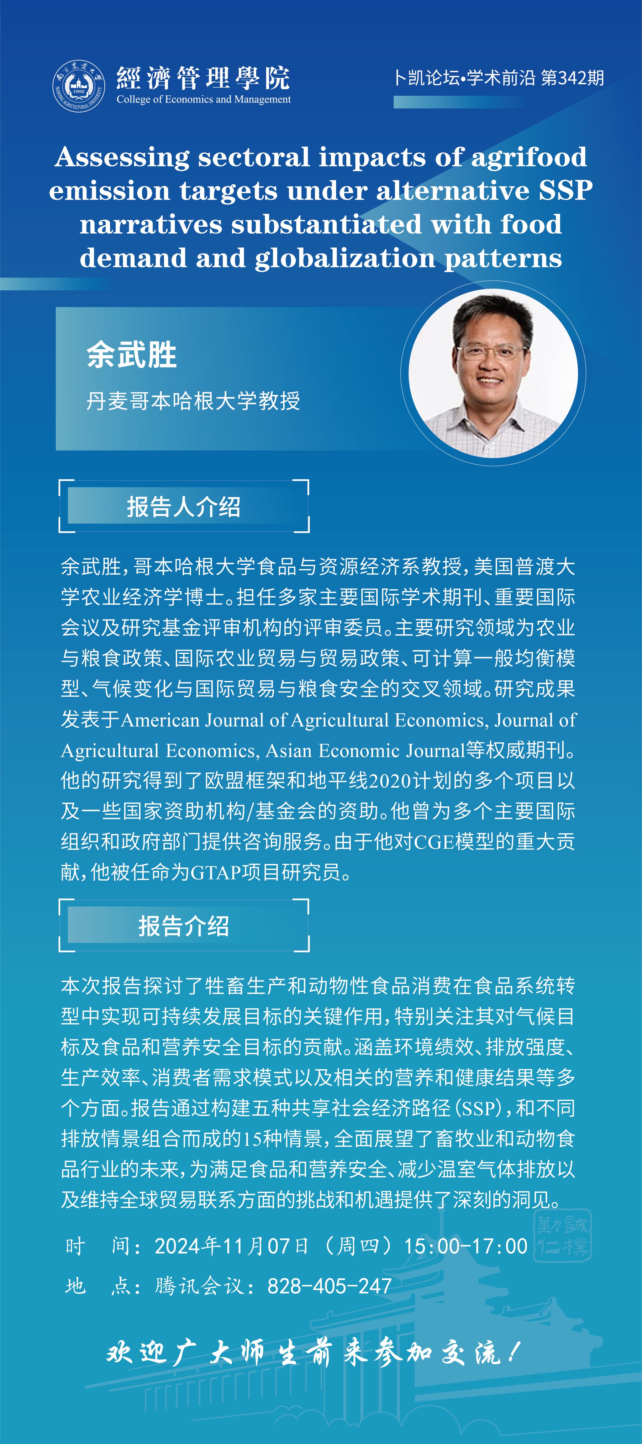 题 目:Assessing sectoral impacts of agrifood emission targets under alternative SSP narratives substantiated with food demand and globalization patterns