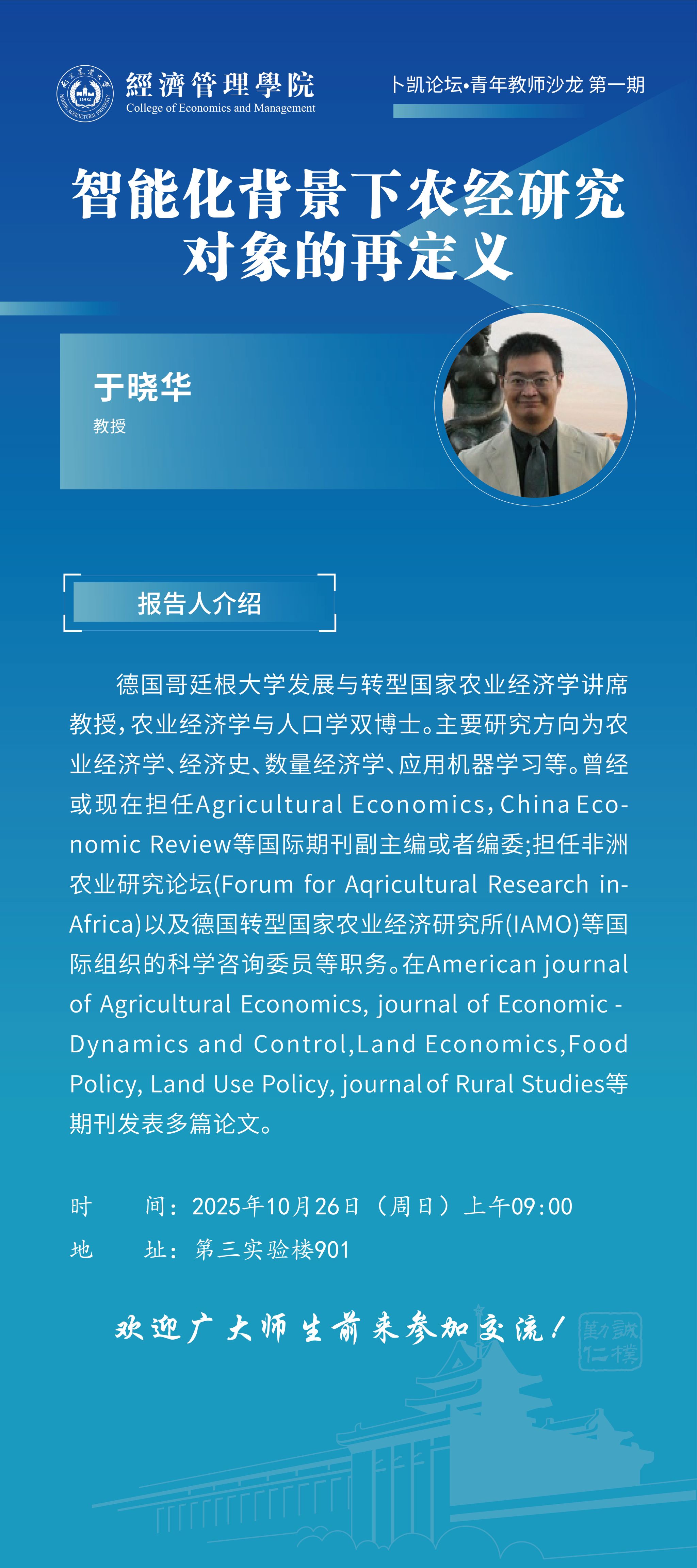 讲座嘉宾:于晓华教授,德国哥廷根大学