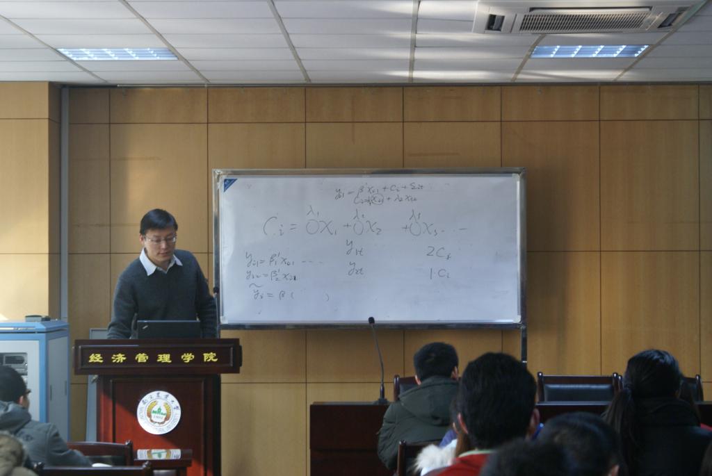 12月27号上午9点半,南农优秀校友、美国康奈尔大学陈希博士来beat365官网做学术报告,在beat365正版唯一官方网站学术报告厅5045为同学们作《基于一般化的面板数据模型的计量检验》的专题报告。beat365正版唯一官方网站林光华副教授主持了此次报告会。
