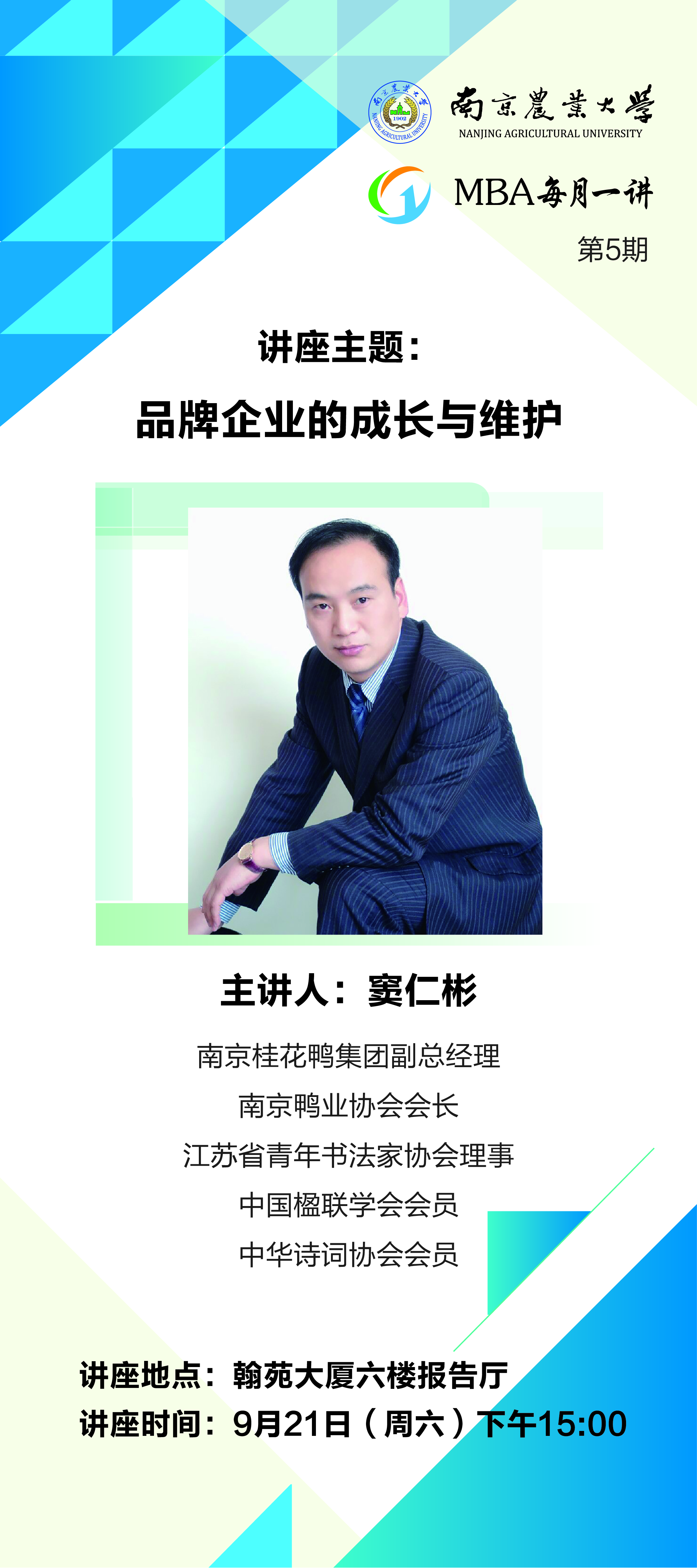 企业家讲座预告:《品牌企业的成长与维护》