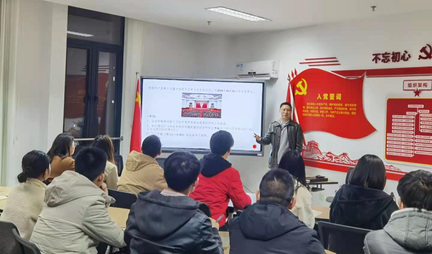 专题学习后,展进涛老师也针对学院的党建工作以及硕博士生党员的学习生活等方面向各位学生党员征求建议,支部成员们纷纷提出自己的建议和想法。会后,学生党员们表示,通过本次学习和与老师的讨论,对党的第十四五规划和二〇三五年远景目标有了更加深入的理解和认识,学生党员们应该将理论与实践结合起来,不断学习,强化自我能力,为今后回馈社会做好准备。
