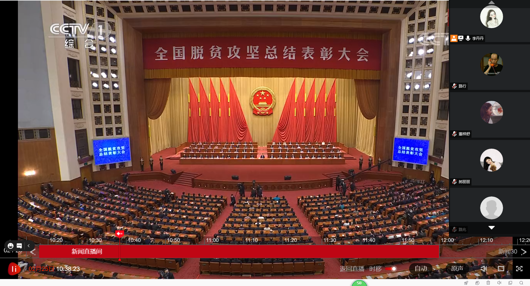 全国脱贫攻坚总结表彰大会2月25日上午在北京隆重举行。中共中央总书记、国家主席、中央军委主席习近平向全国脱贫攻坚楷模荣誉称号获得者颁奖并发表重要讲话。专业硕士第二党支部召开支部会议收看了大会实况直播,并组织集中讨论与学习。