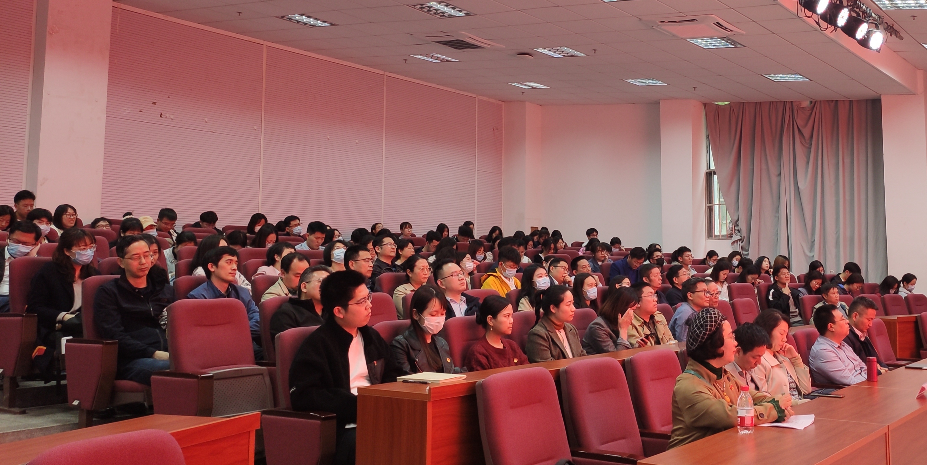 4月21日下午,根据学校党史学习教育方案统一部署,beat365正版唯一官方网站特邀马克思主义学院姜姝副教授做“礼赞共产党人精神谱系里的‘中国红’”专题党史学习报告。学院领导班子、教职员工、党支部书记(委员)、新发展党员、入党积极分子等200余人参加了集中学习。院党委书记姜海主持学习报告会。