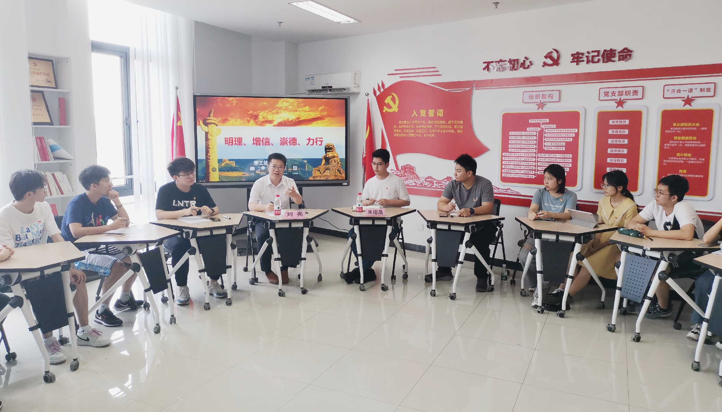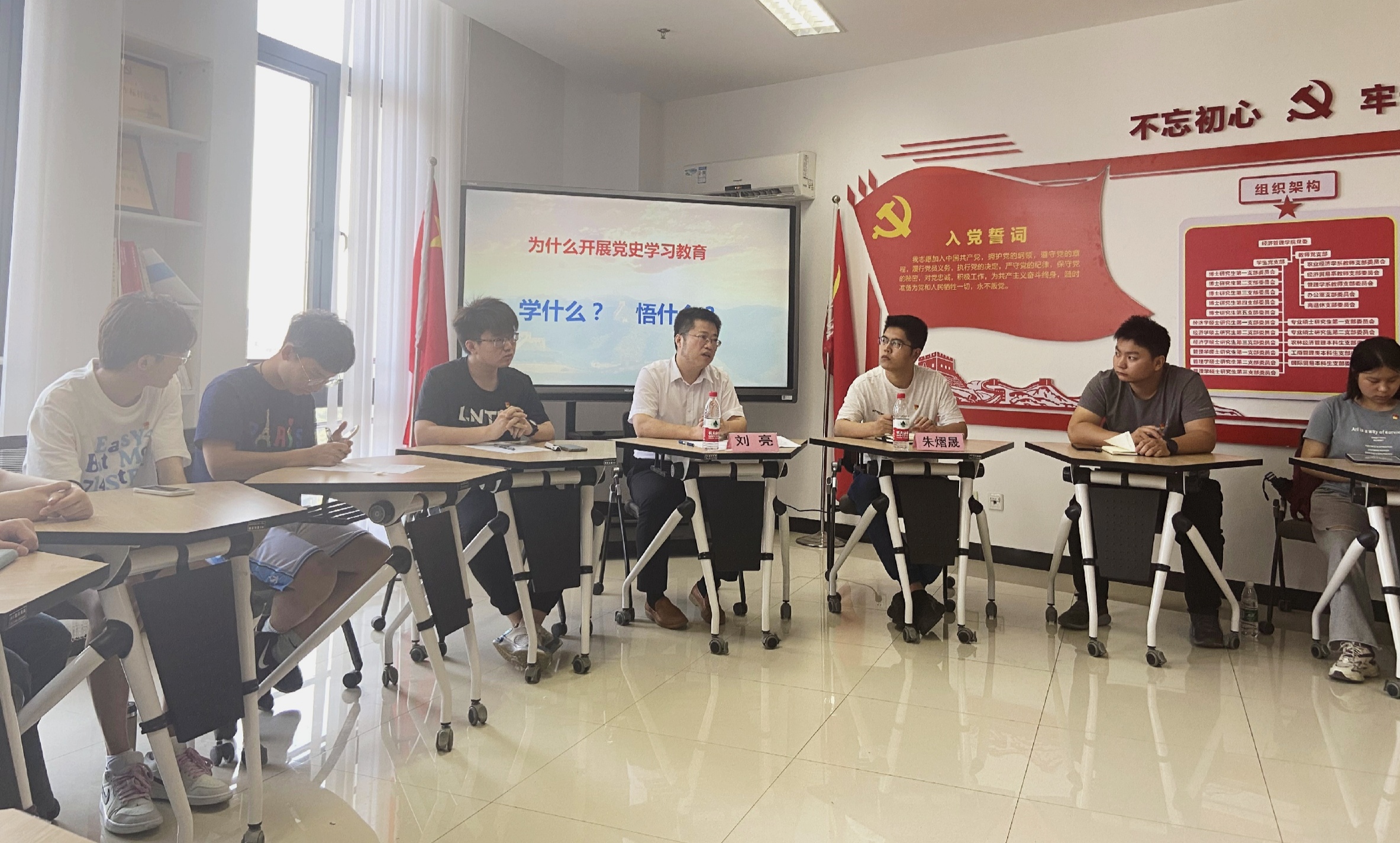 6月23日下午,农林经济管理本科生党支部在第三实验楼725召开党史学习教育主题党日,联系党支部的机关领导、校学生工作处处长刘亮以《明理、增信、崇德、力行》为题为支部党员上专题党课。