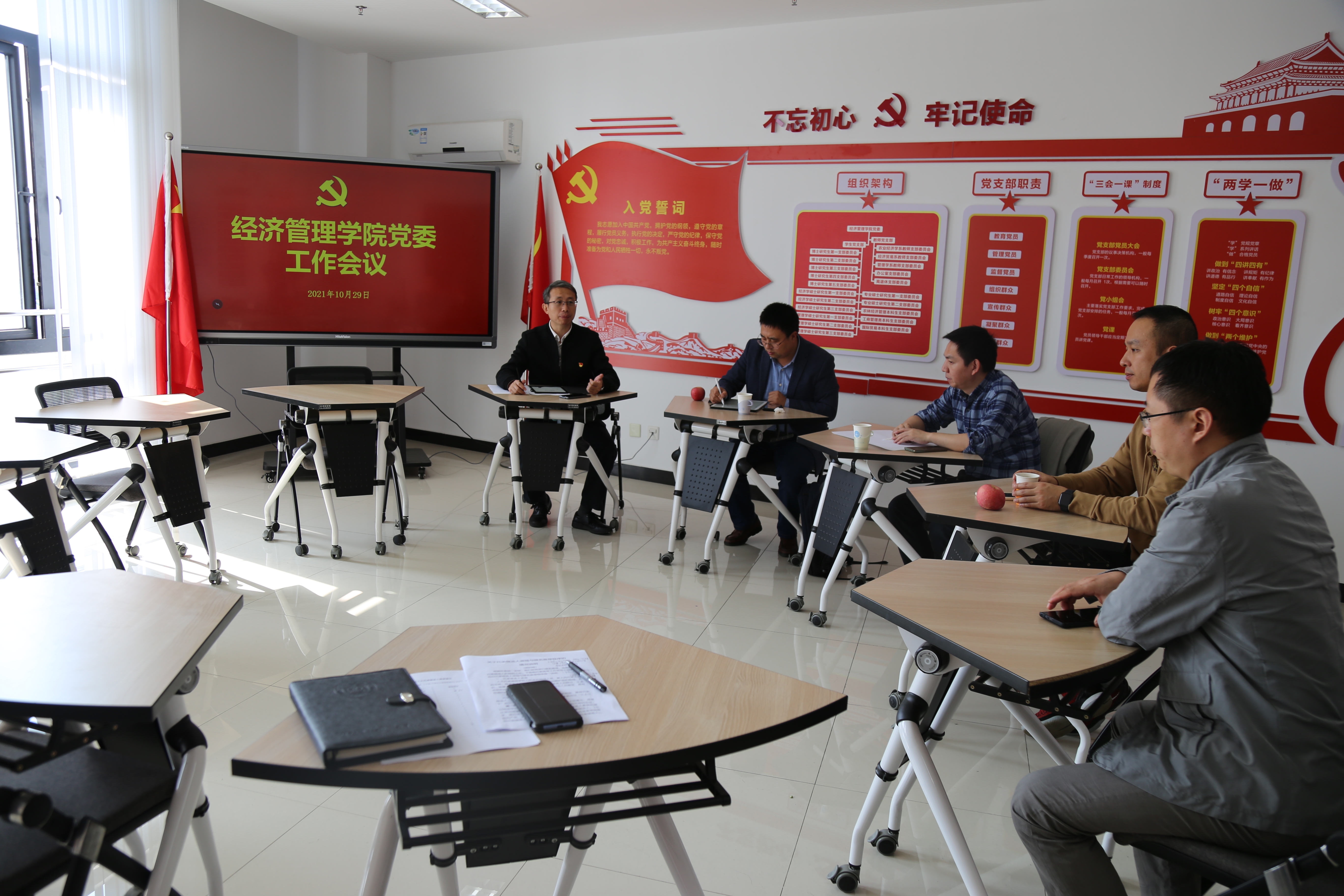 2021年10月29日,beat365正版唯一官方网站党委召开工作会议。院党委书记姜海主持会议,党委副书记宋俊峰,党委委员林光华、周力、展进涛等出席会议,办公室主任夏德峰列席会议。
