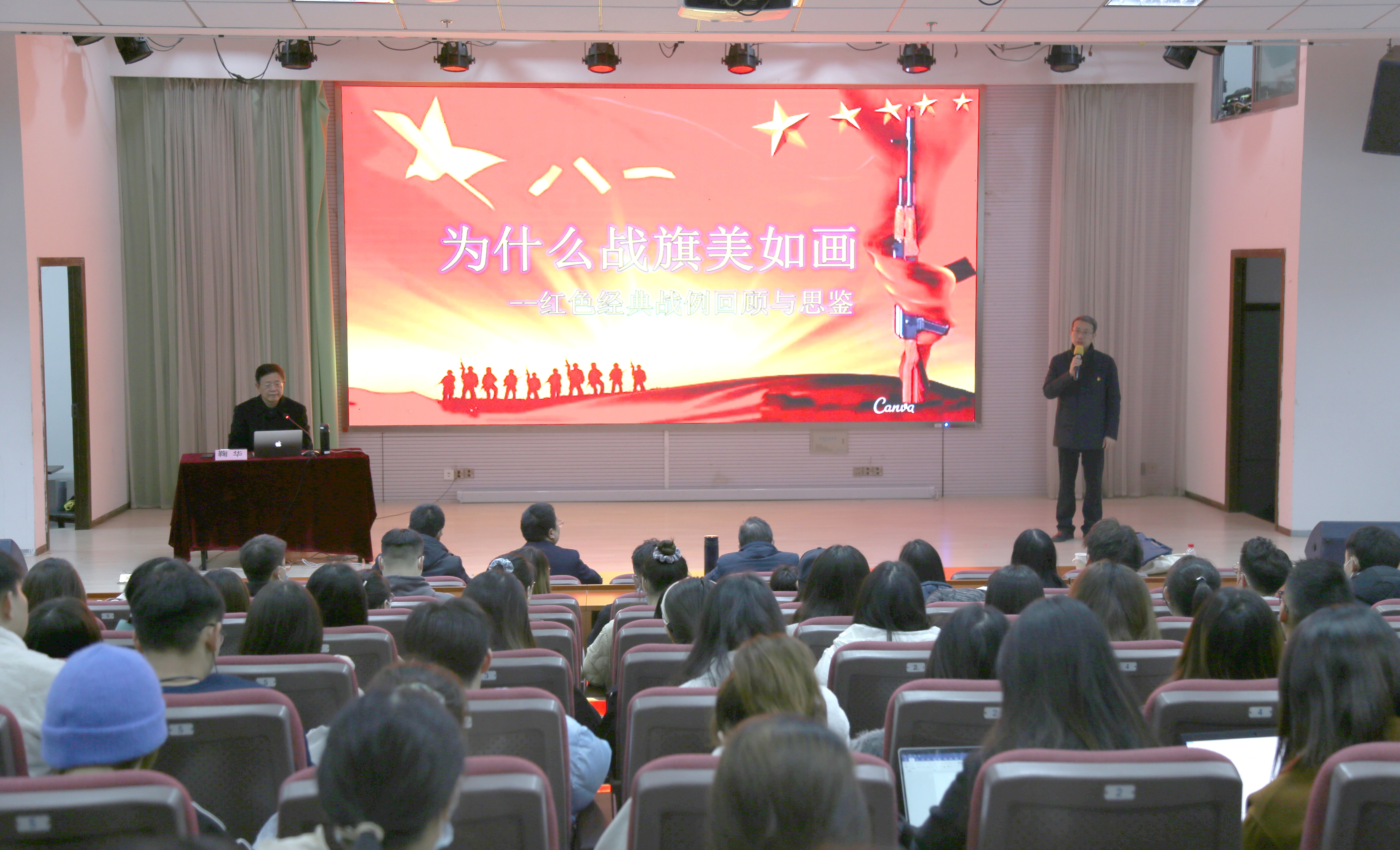 12月15日下午,江苏省金陵书画研究院特聘研究员、江苏省军区原副司令员兼参谋长鞠华为学院师生做“为什么战旗美如画”党史学习专题报告。报告会由院党委书记姜海主持,学院师生200余人参加。