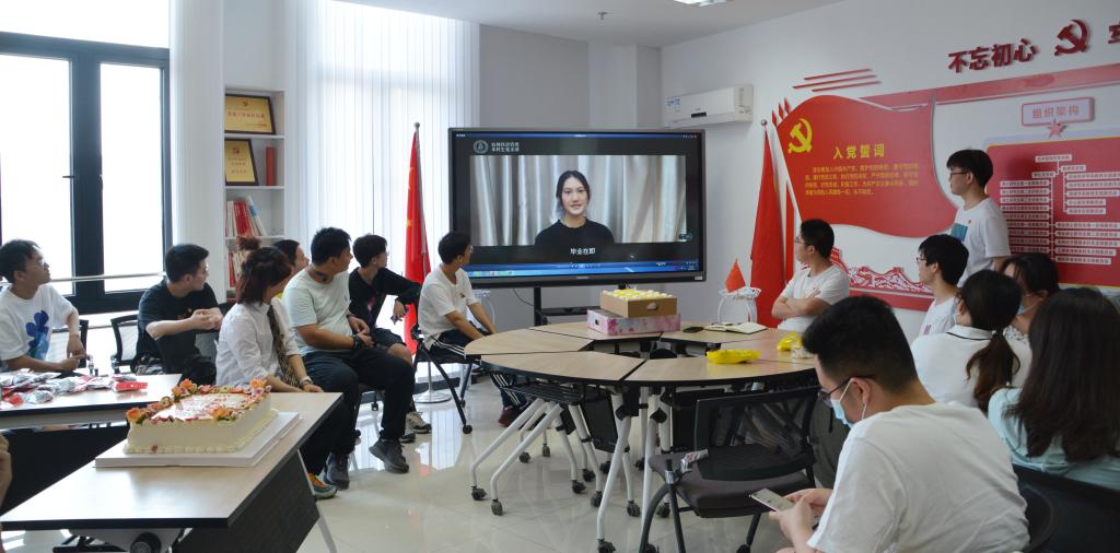 欢送毕业生党员仪式上播放了低年级党员为毕业生党员拍摄的欢送视频《毕业献礼——关于我们的祝福》。“愿此去繁华似锦,跃入人海,各有灿烂!”同志们纷纷向毕业生党员送上祝福。