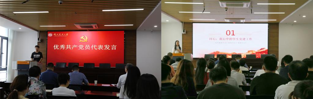 颁奖后,经济学硕士研究生第三党支部副书记王猛作为优秀共产党员代表在大会发言。管理学硕士研究生第二党支部书记崔鑫妍作为优秀党支部书记代表做《且行且思·且悟且进》党建工作心得分享。