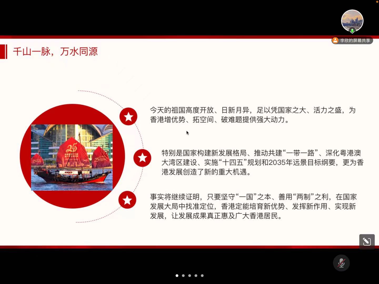 全体党员观看了“庆祝香港回归祖国25周年大会暨香港特别行政区第六届政府就职典礼”,学习习近平总书记的重要讲话精神。二十五载栉风沐雨,二十五载春华秋实,党支部全体成员依照“25年前”、“25年间”和“25年后”三个方面分别学习了有关历史实事,深刻理解党中央的重大举措,全面了解香港独特优势与地位的重要性。“一国”原则愈坚固,“两制”优势愈彰显。党支部全体成员一起祝福香港,在新的起点上再出发,为实现中华民族伟大复兴的中国梦增光添彩。