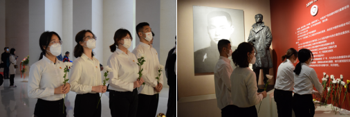 4月5日党员们共同前往雨花台烈士纪念馆。在雨花台烈士纪念馆,全体党员参观了雨花英烈生平事迹。一张张老照片,一件件老物件,再现了雨花英烈可歌可泣的英勇事迹,让在场的每名党员感受到了深刻的灵魂洗礼。党员代表们在革命先烈的塑像前敬献白菊,全体人员整齐列队、肃穆而立,向先烈们默哀致敬。