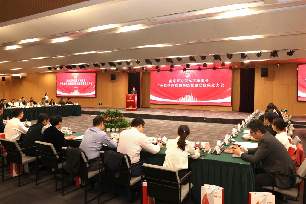 为深入开展学习贯彻习近平新时代中国特色社会主义思想主题教育,全面深入学习宣传贯彻党的二十大精神,充分发挥各方优势,深入探究“组织共建、资源共享、人才共育、文明共创、创新共研、发展共赢”的“党建+业务”发展新模式,学院党委应邀参加于5月5日在南京证券总部举行的“南京证券资本市场服务产业链供应链创新链党建联盟”成立大会。