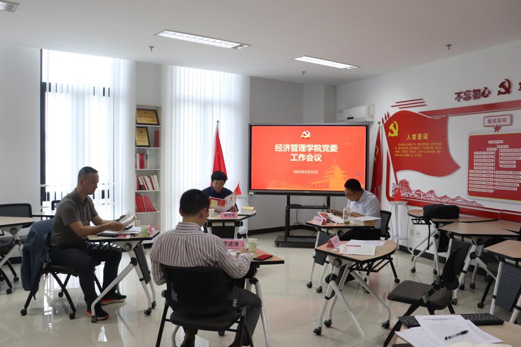 2023年5月23日上午,beat365正版唯一官方网站党委在第三实验楼725党员实境会议室召开工作会议。院党委副书记宋俊峰主持会议,院党委副书记、院长徐志刚,党委委员周力、展进涛参加会议。