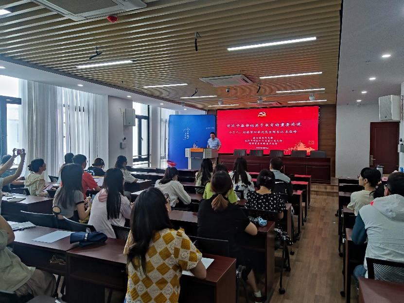 6月4日上午,国际贸易本科生党支部与博士第五党支部、经济学硕士研究生第一党支部于第三实验楼706教室共上主题党课,深入学习习近平总书记关于教育的重要论述。