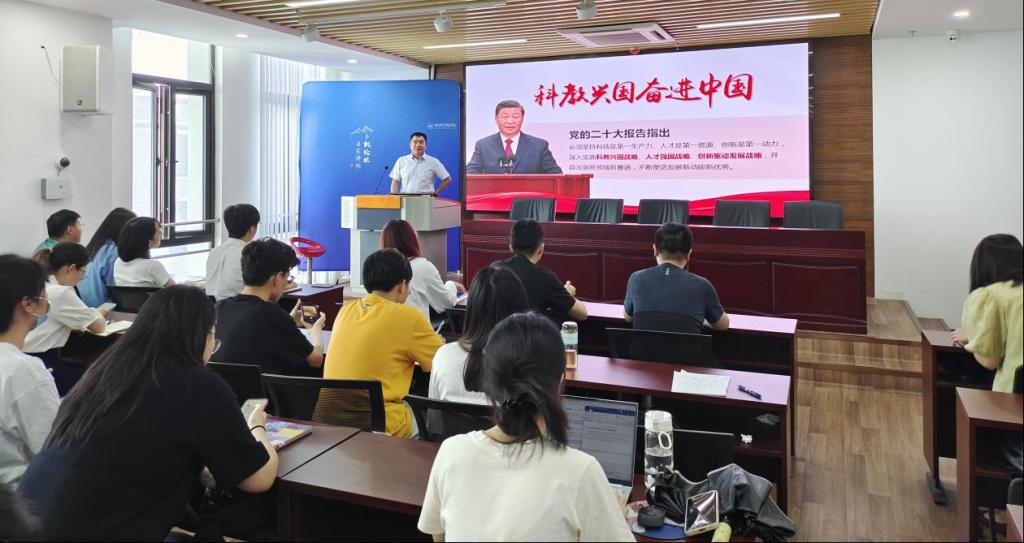 在党课中,耿院长首先分享了“科教兴国、人才强国、创新驱动发展战略”三大战略的提出背景;其次,介绍了党的十八大以来我国教育、科技、人才工作取得的历史性胜利;最后,讲述了我国加快建设教育强国、科技强国、人才强国的总体方向与重点任务,让大家对教育、科技、人才、创新几个要素的内在逻辑、辩证关系以及相互之间的互促互融关系有了更清晰和深刻的认识。