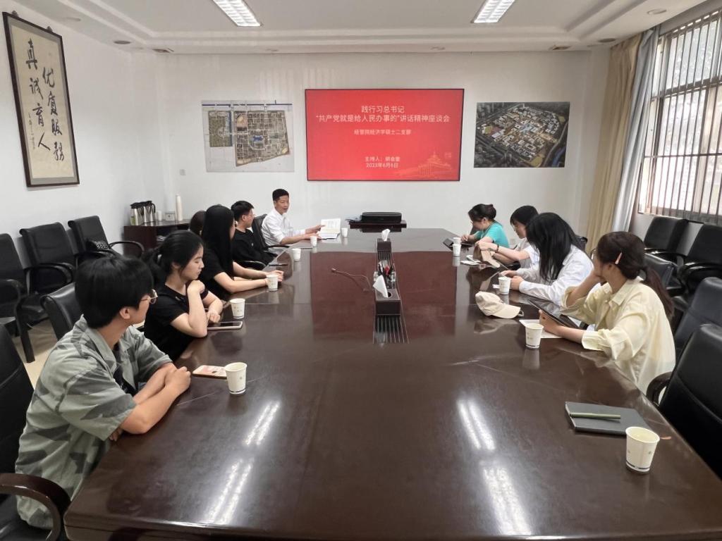2023年6月6日下午15:30,经济学硕士研究生第二党支部在后勤保障部105会议室召开了践行习近平总书记“共产党就是给人民办事的”讲话精神座谈会。
