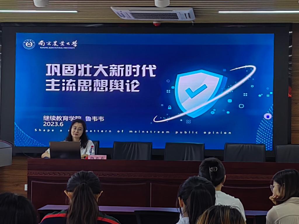 鲁老师以《巩固壮大新时代主流思想舆论》为题,系统讲解了习近平总书记关于做好新时代主流意识形态工作的重要思想;分析了当前网络意识形态的整体发展态势;并结合近期发生的实际案例介绍了网络舆情应对等内容。最后,辛玉玉同志发表感悟,表示要牢记党员身份,在习近平新时代中国特色社会主义思想指引下,全面学习、全面把握、全面落实党的二十大精神,传播正能量,弘扬主旋律,坚持正确的舆论导向,为凝聚实现中华民族伟大复兴精神力量献出力量。