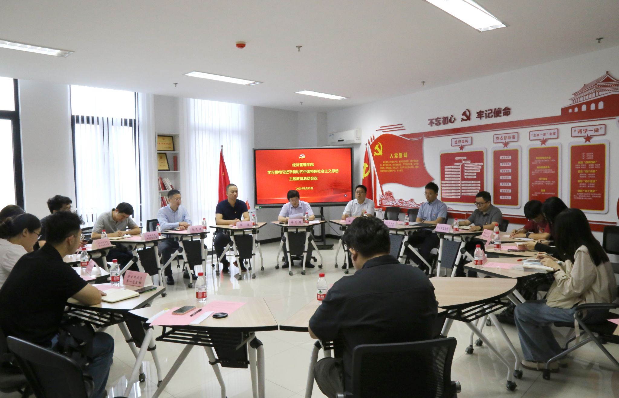 9月13日上午,经管院召开学习贯彻习近平新时代中国特色社会主义思想主题教育总结会议,交流总结学院主题教育的收获体会、典型做法和取得成效,并对下一阶段持续巩固深化主题教育成果进行部署。学院领导班子、党委委员、系主任、支部书记、教师代表、学生代表等参加会议,会议由院党委副书记宋俊峰主持。