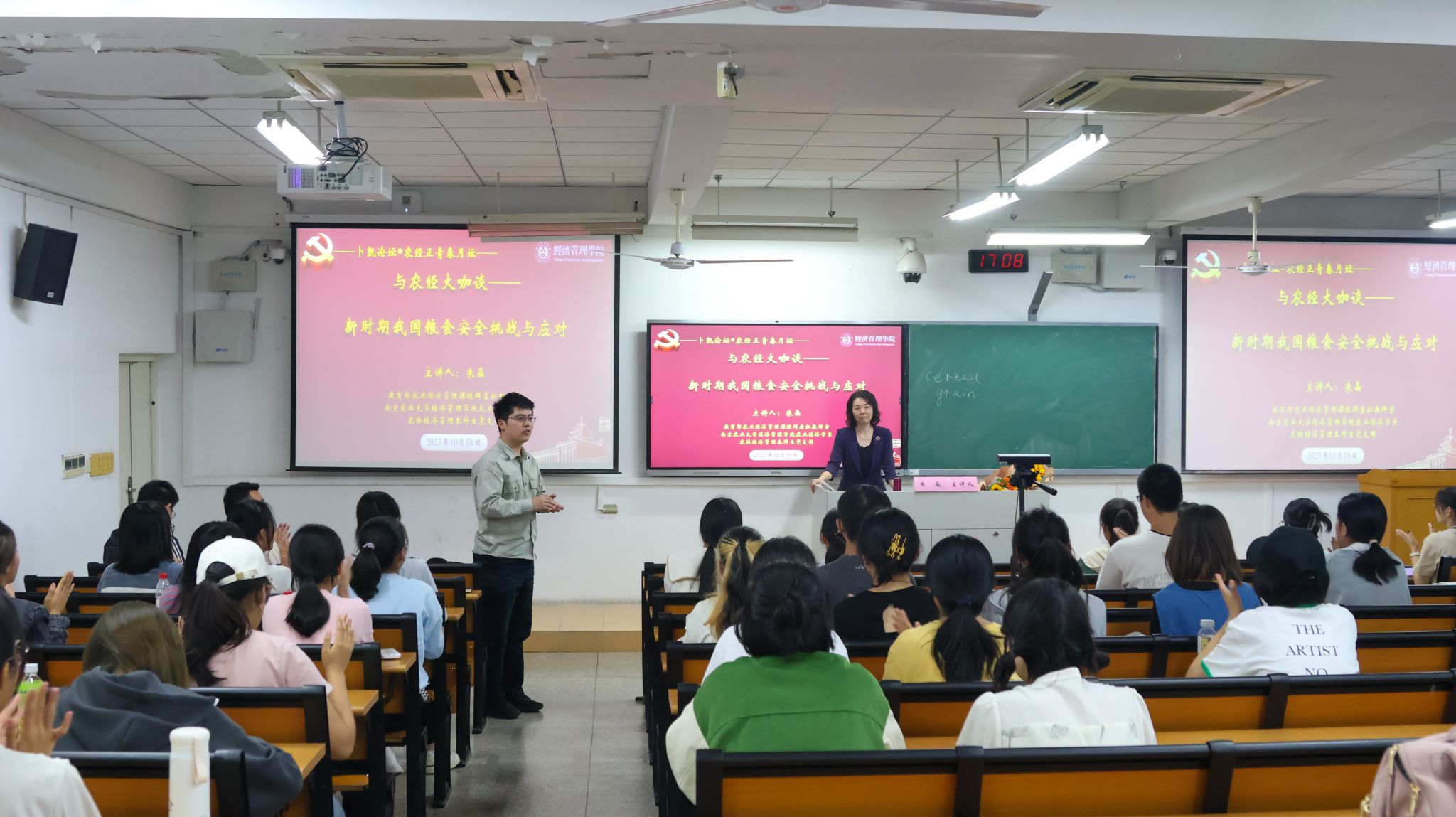 在自由提问环节,同学们就如何应对我国粮食安全挑战展开了热烈讨论,朱晶教授对同学们的问题予以耐心解答。