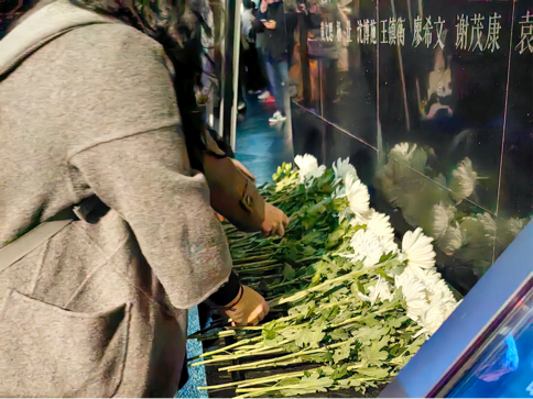 手持白菊悼念逝去遇难同胞