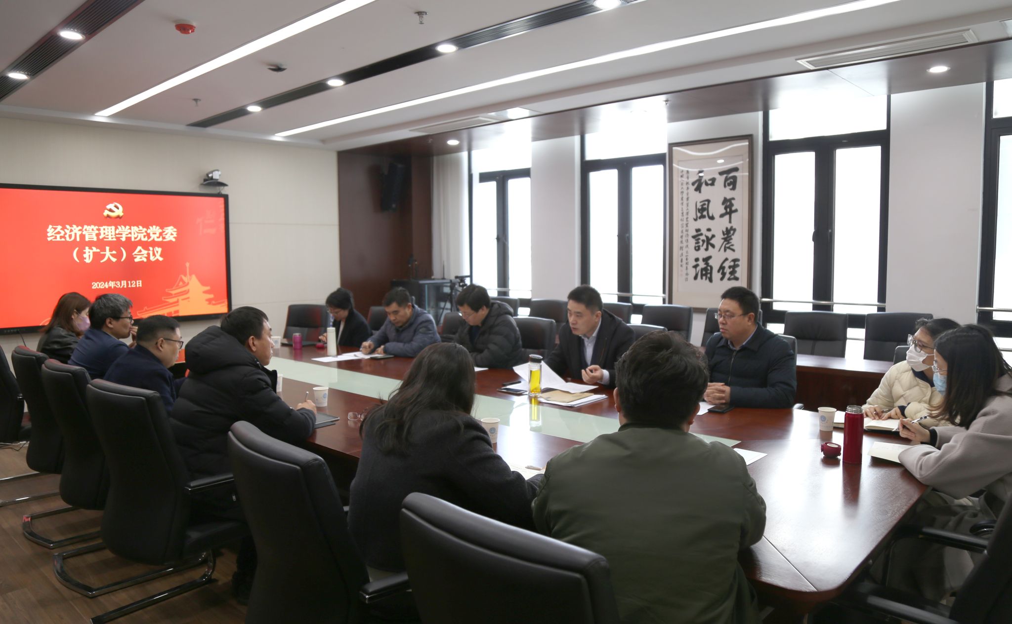 2024年3月12日,学院召开党委扩大会议。院党委书记孙雪峰主持会议,院党委副书记、院长徐志刚,院党委副书记宋俊峰、党委委员耿献辉等出席会议,教师党支部书记、系主任、学生党支部书记代表等列席。