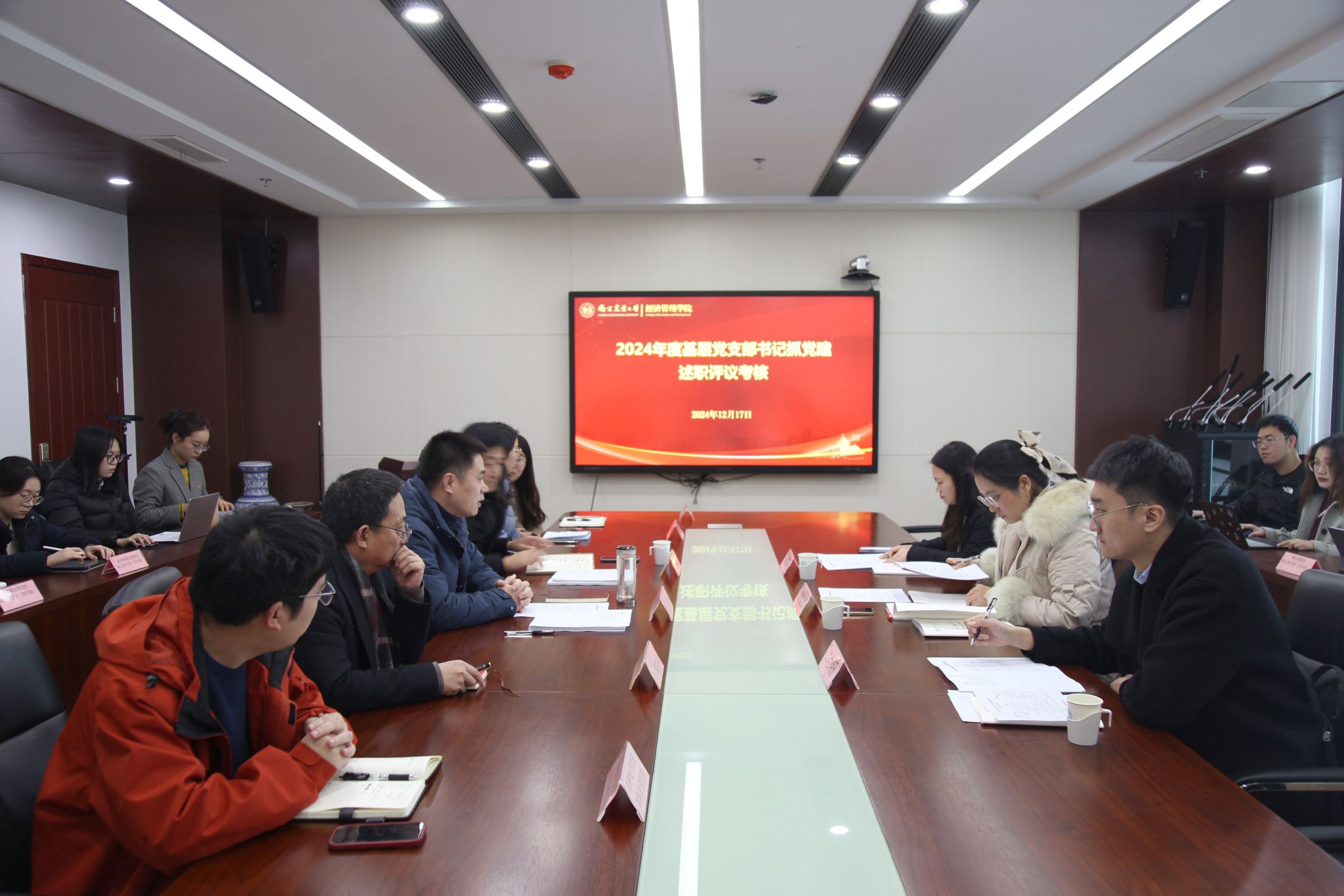 会上,学院办公室党支部、博士研究生第一党支部、博士研究生第四党支部、管理学硕士研究生第三党支部、经济学硕士研究生第三党支部、专业硕士研究生第一党支部、国际贸易本科生党支部等7个师生党支部从党支部基本情况、履行党建责任情况、党建进展情况和成效、思想政治工作情况、存在的突出问题及改进思路、下一年度计划等方面进行了现场述职,其余师生党支部均作纸质材料汇报。