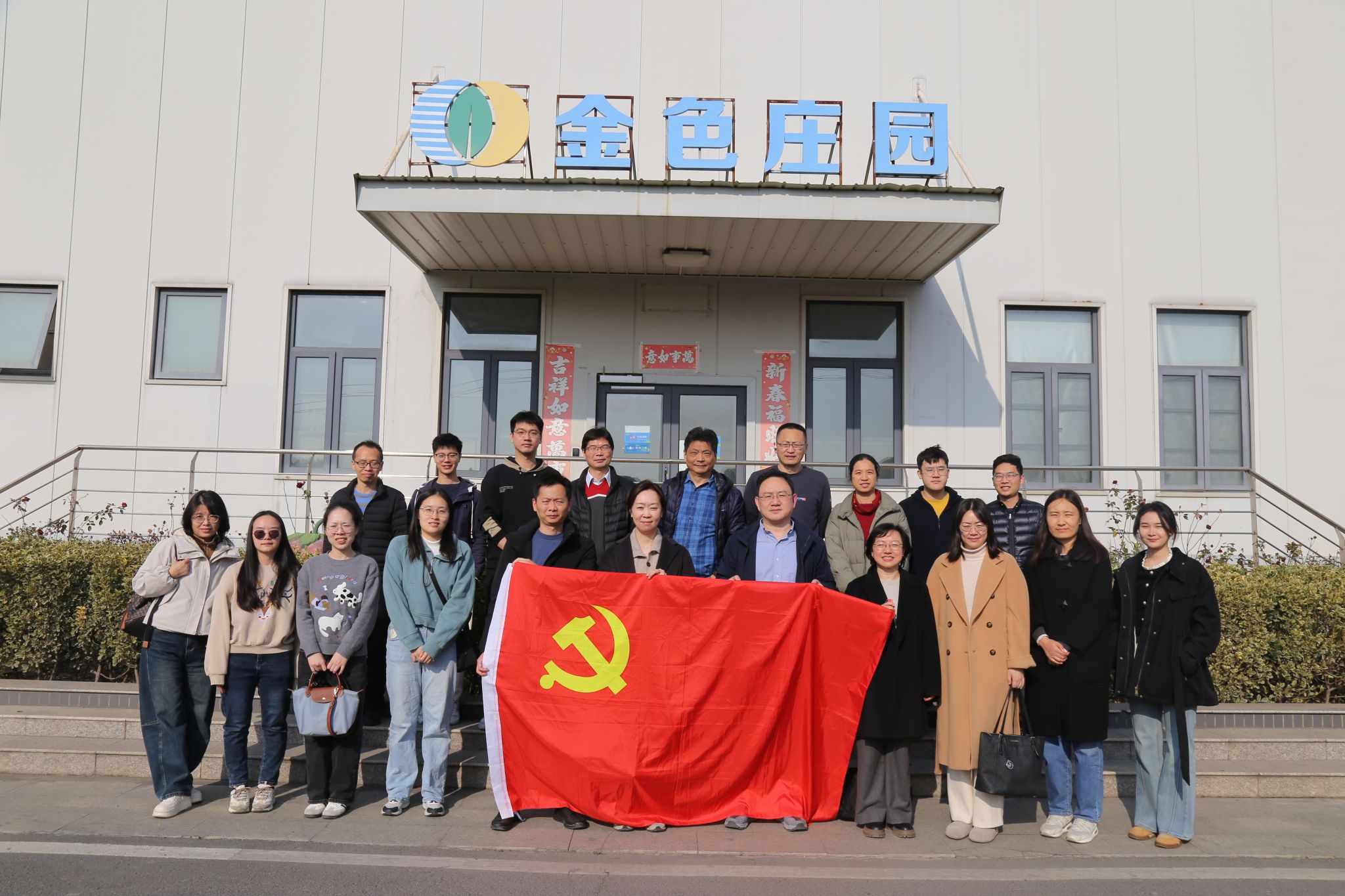 随后,双方支部党员赴我国草莓全产业链龙头企业--南京金色庄园农产品有限公司考察。公司行政主管介绍了公司发展历程、全国种植基地布局和物流节点、公司在草莓等水果方面的种植与仓储技术创新、创新创业实践、连农带动效果等情况,并实地参观了草莓种植温室大棚、草莓产后分拣流水线情况。双方支部党员对企业的产品开发、生产经营、技术应用等方面进行了互动交流,通过实践考察丰富了专业知识。
