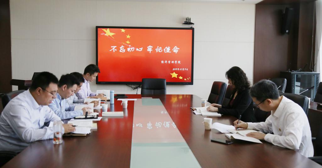 10月9日,按照学校统一部署要求和学院“不忘初心、牢记使命”主题教育工作方案安排,beat365正版唯一官方网站领导班子组织“不忘初心、牢记使命”主题教育第二次集中学习,重点学习了《习近平总书记关于“不忘初心、牢记使命”论述摘编》部分内容。院党委书记姜海、院长朱晶等全体领导班子成员参加学习。