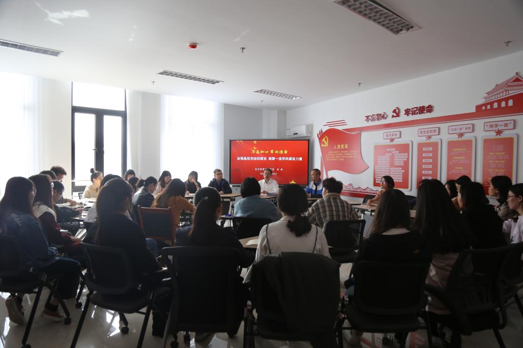 接下来,以全院党员问卷调查为基础,姜海检视了学院党建工作的现状。与党支部书记们就学院基层党组织制度、能力建设、品牌创建与特色打造及近期进展等问题进行了深入探讨。