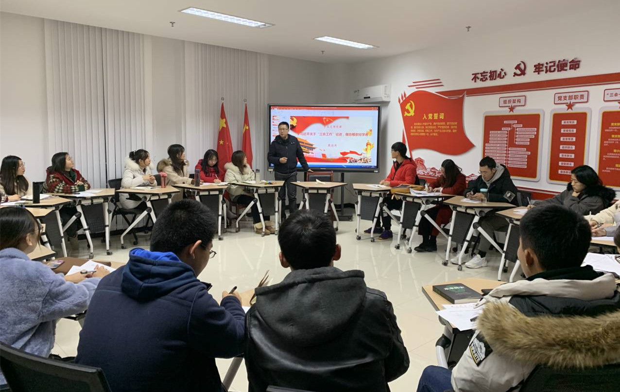首先,展老师为两个党支部上了主题为《学习习近平关于“三农工作”论述,做合格农经学者》的专题党课。展老师为我们讲解了习近平总书记“三农”思想的科学内涵,以及“三个必须”“三个不能”“三个坚定不移”。党课的主要内容是论“三农工作”的重要性,小康不小康,关键看老乡,任何时候都不能忽视农业、忘记农民、淡谈农村;城乡融合发展;论农村脱贫攻坚。