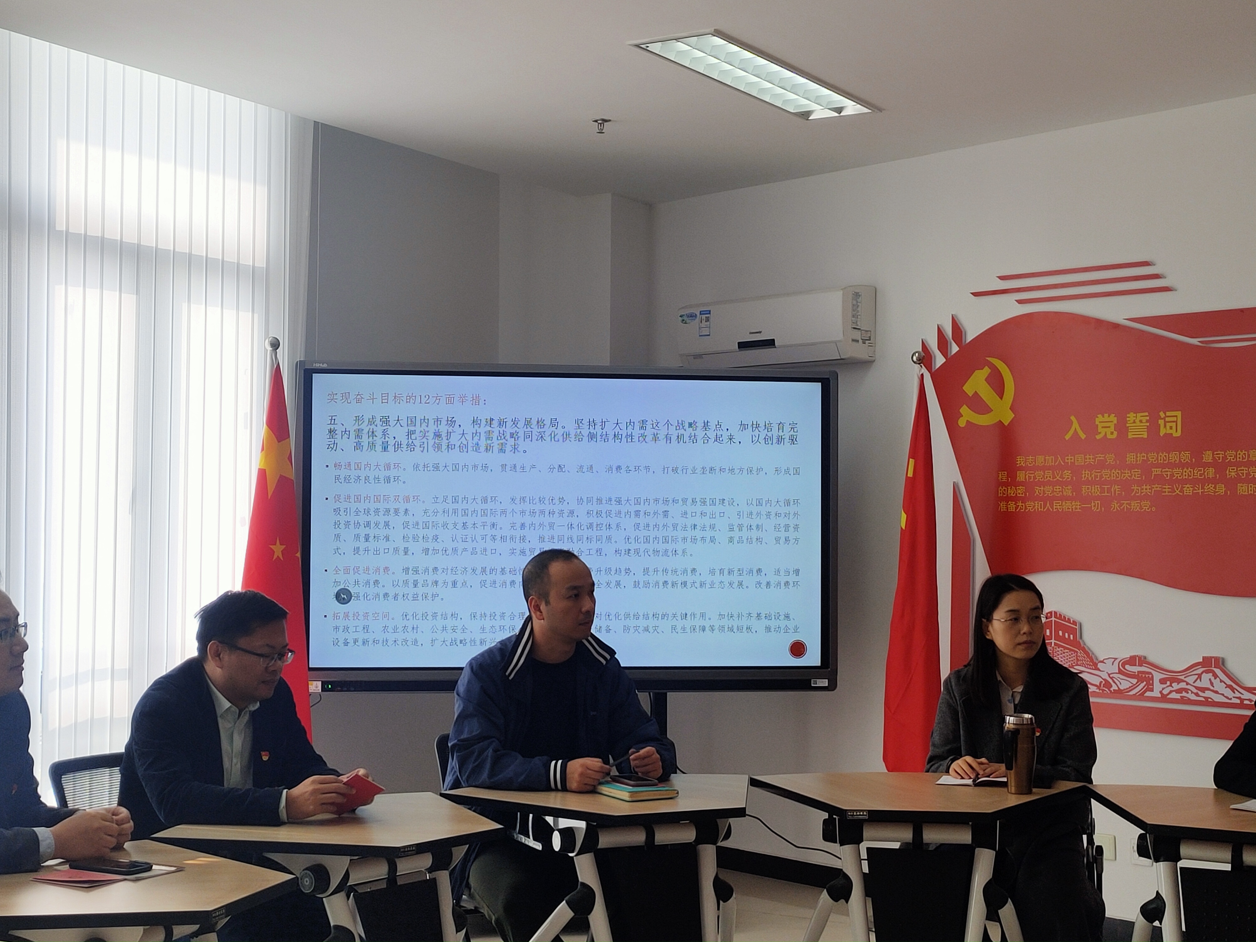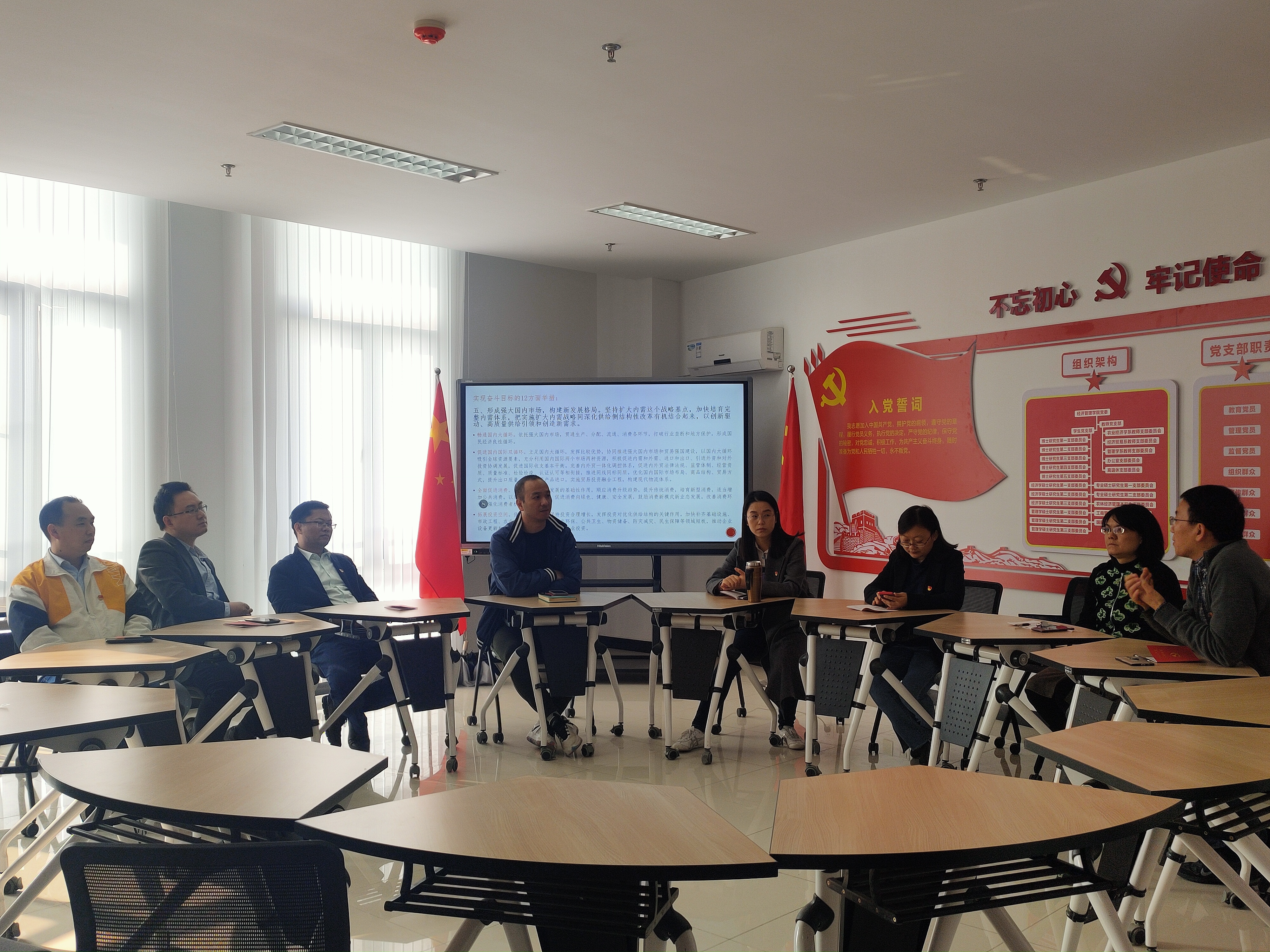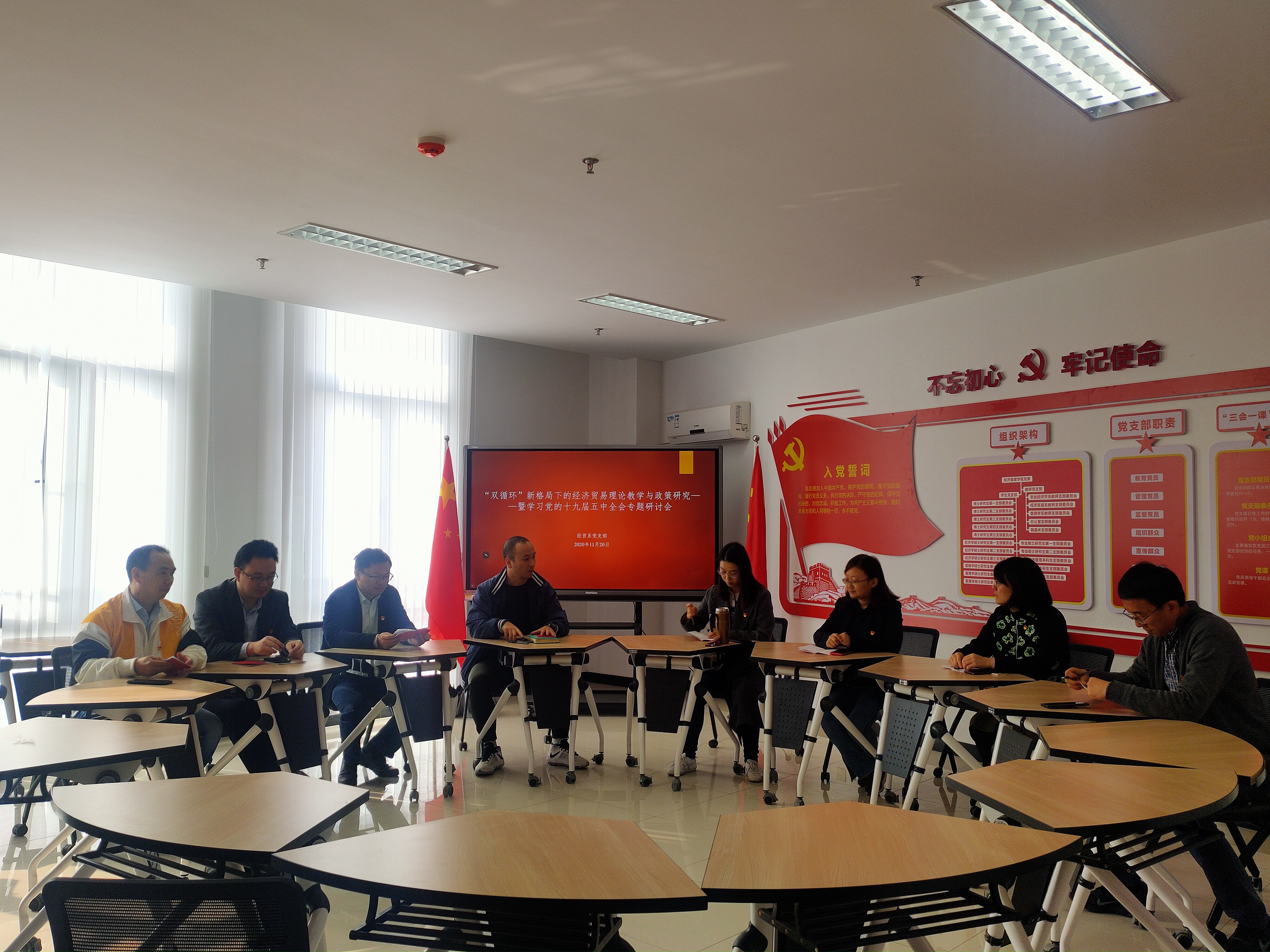 11月20日上午,经贸系教师党支部开展了“双循环”新格局下的经济贸易理论教学与政策研究的讨论会。本次会议由党支部书记周力同志主持,经济贸易系党支部8名党员教师参加了本次学习活动。