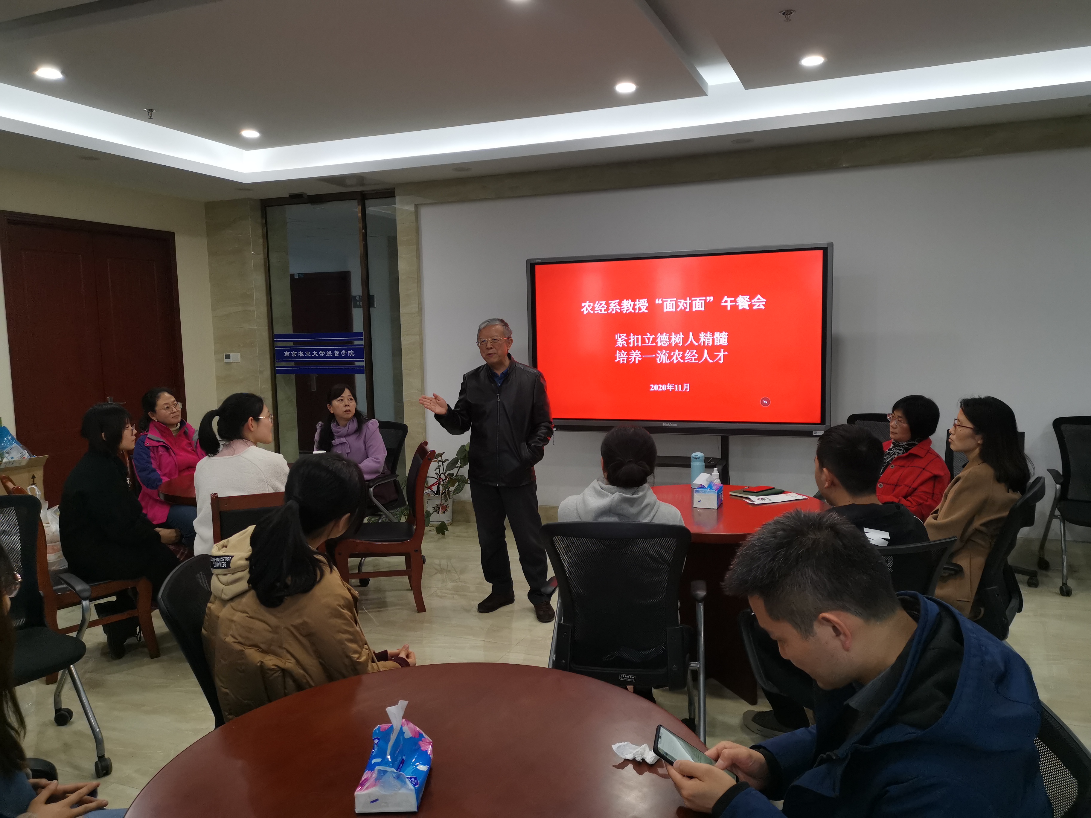 农业经济学系教师党支部全面贯彻党的教育方针,坚持社会主义办学方向,落实立德树人根本任务,遵循教育规律,紧扣立德树人精髓,培养一流农经人才。党支部于2020年11月26日在beat365正版唯一官方网站第三试验楼7楼活动室组织开展了第二期“农业经济学系教授—学生面对面”主题党日活动,践行“立德树人”根本任务,深入学生中去,进一步发挥教师“传帮带”作用,解答学生困惑,关心学生学习成长,不断探索、积极创新新时代人才培养模式。