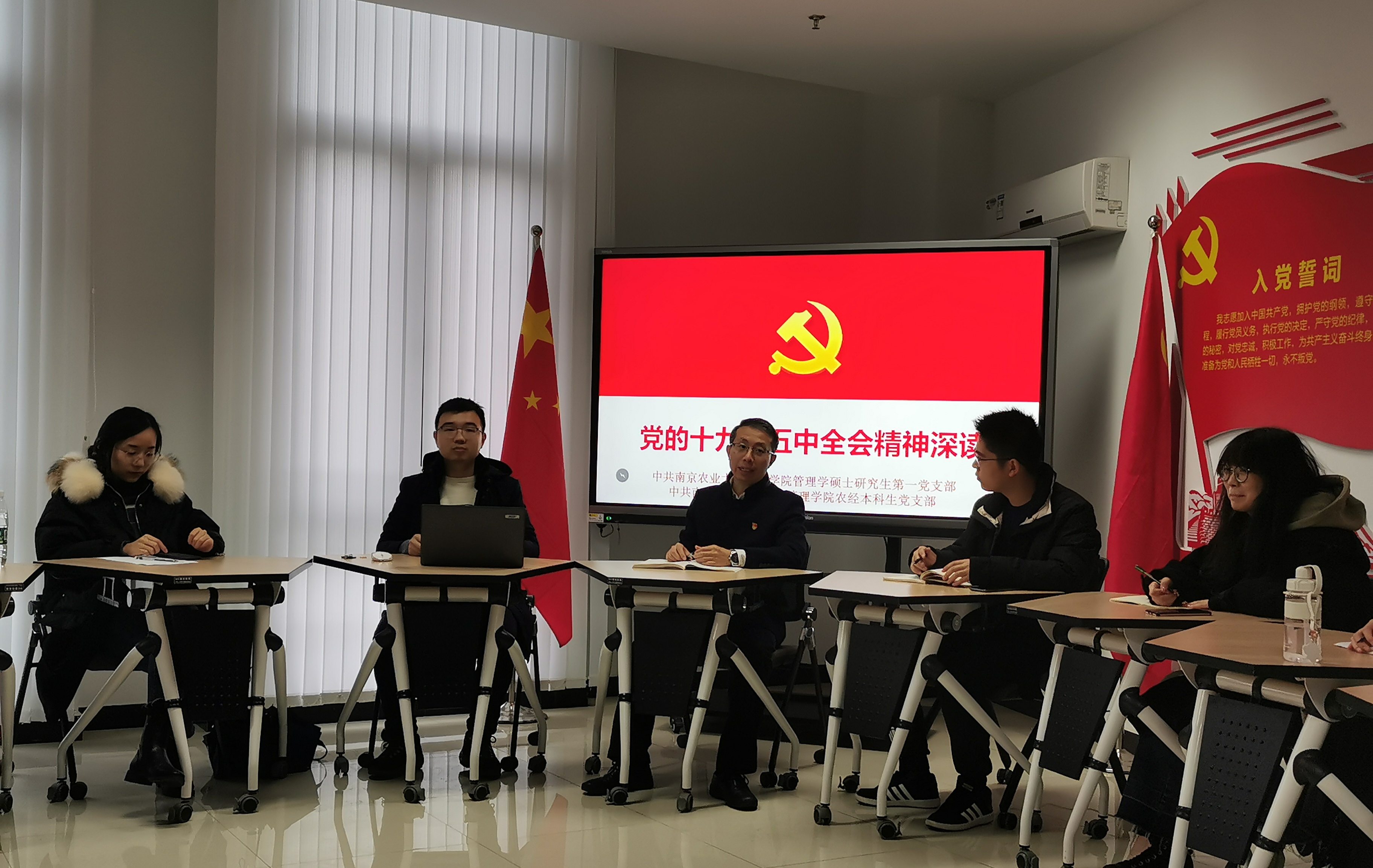 11月25日,农林经济管理本科生党支部与管理学硕士研究生第一党支部在第三实验楼725党员实境课堂组织开展“聚焦党的十九届五中全会,凝聚青春兴农力量”专题学习。学院党委书记姜海为联系的本硕党支部上专题党课,两个支部全体党员同学参加了本次学习。