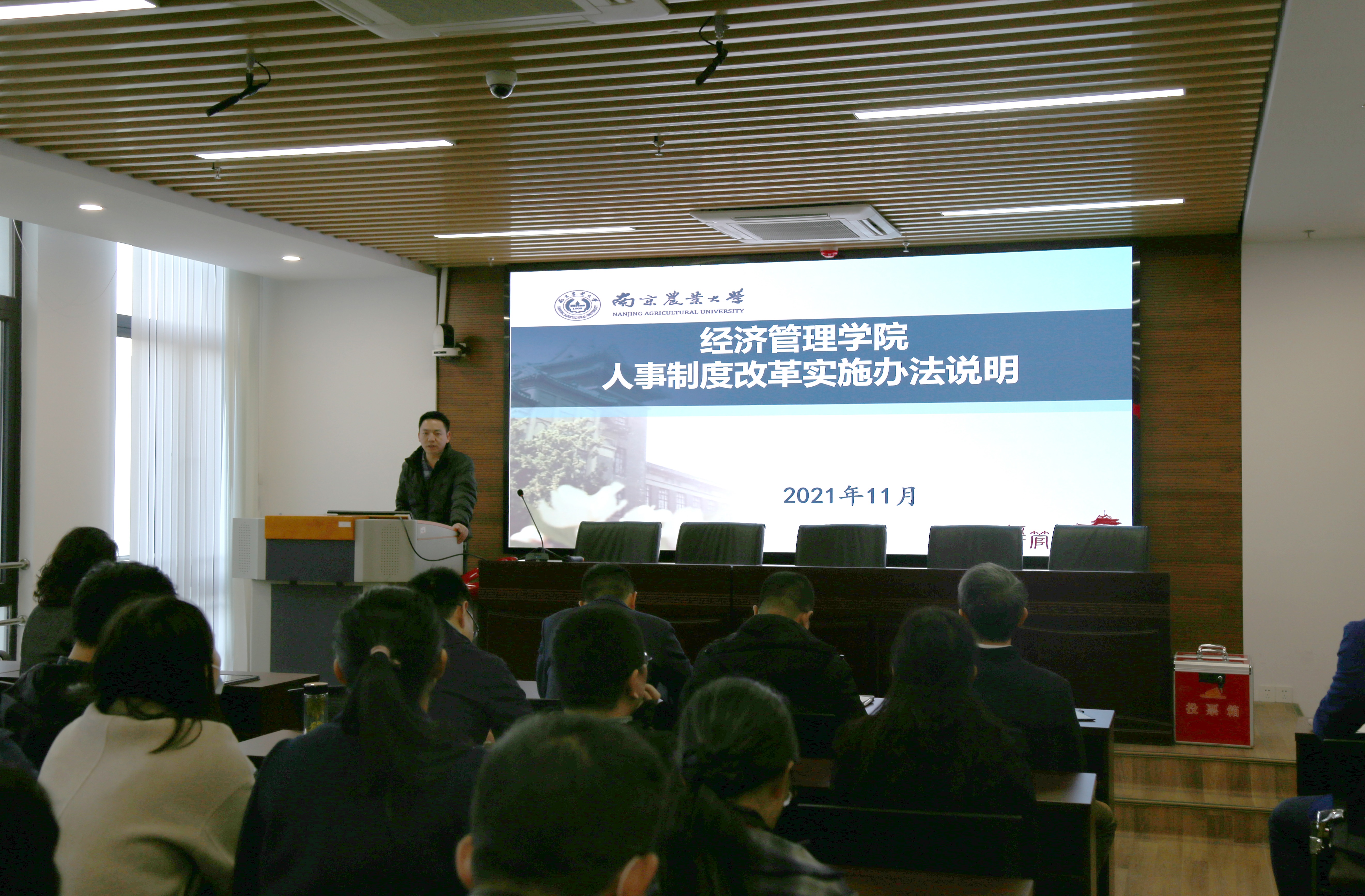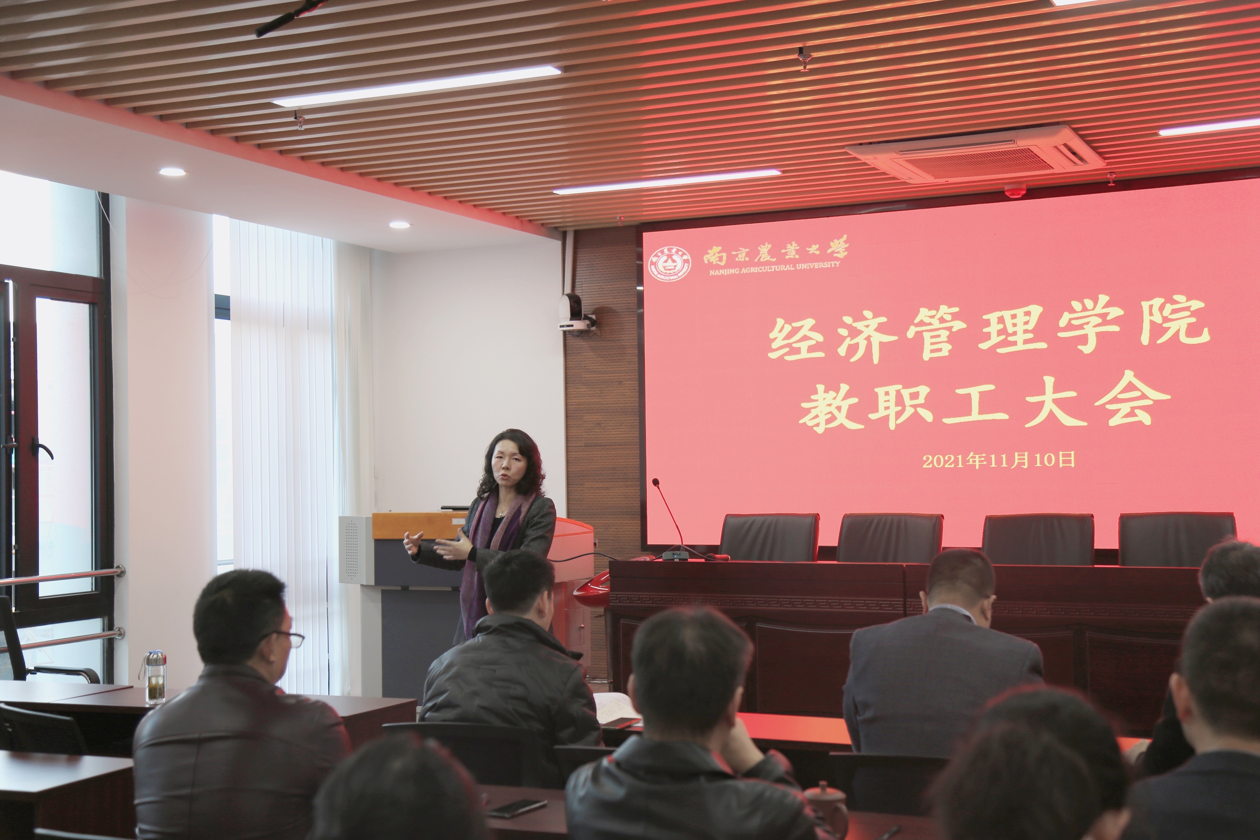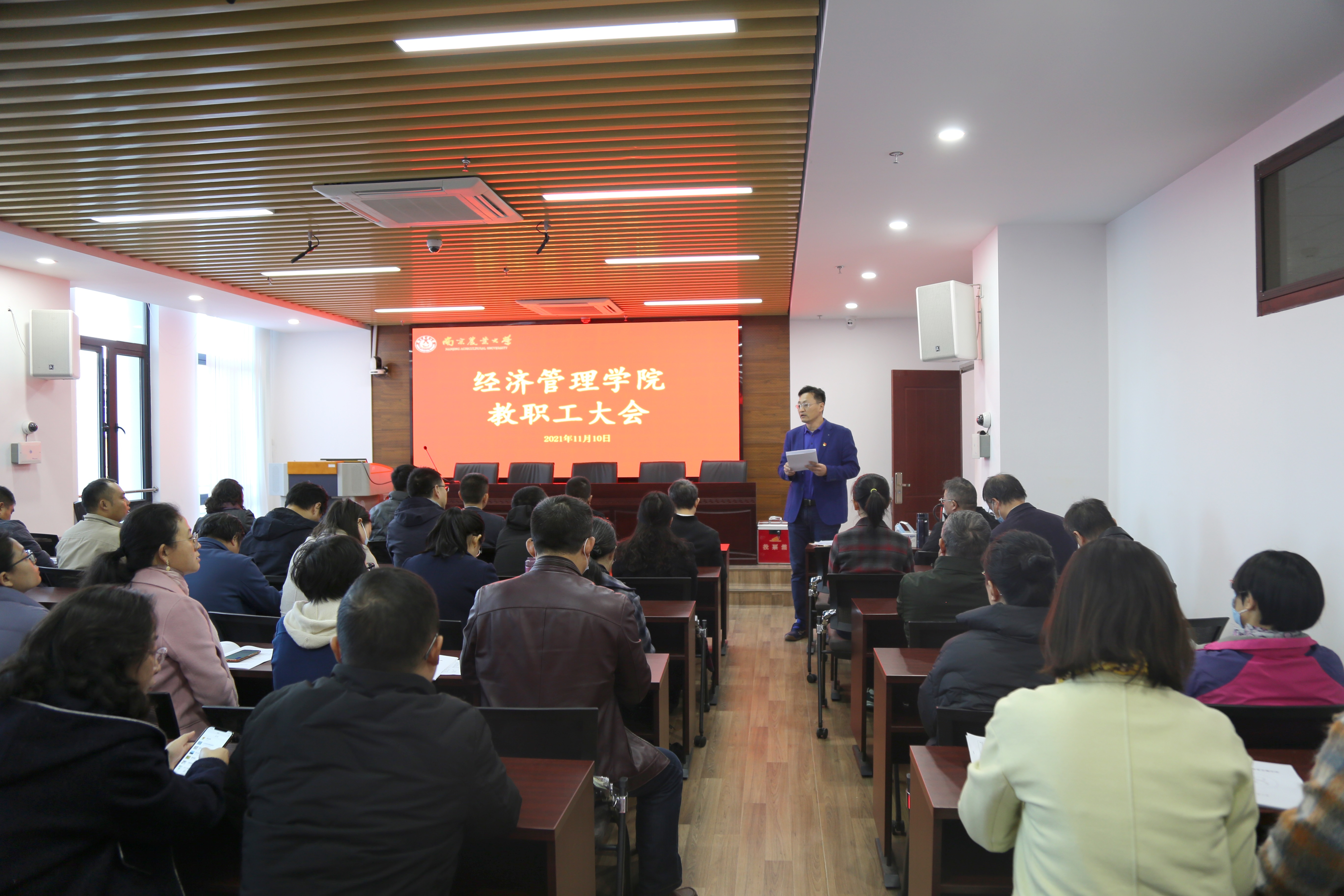 院党委书记姜海做大会总结。此次教职工大会组织严密、程序规范、氛围和谐,充分保障了教职工合法权益,通过民主决策顺利审议通过《beat365正版唯一官方网站人事制度改革实施办法》,很好地彰显了学院的凝聚力向心力,也为学院发展提供了重要制度支撑和共识力量。