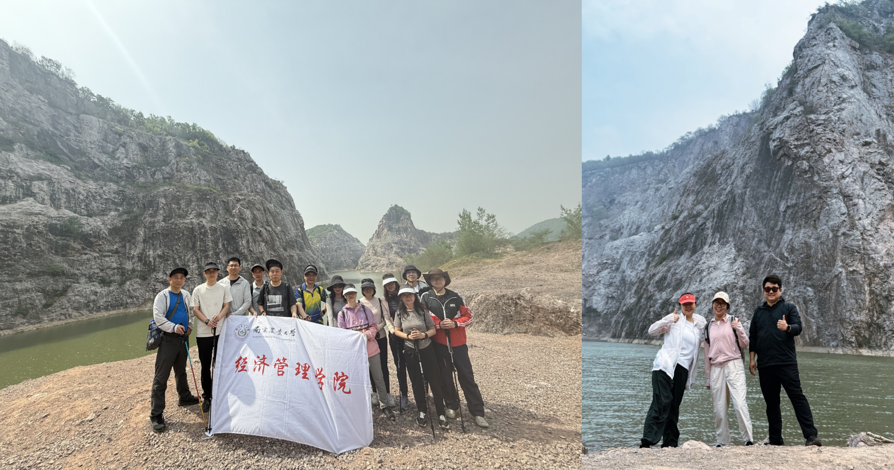 活动当天,教职工们身着轻便的运动装,在专业登山领队的带领下,沿着精心规划的路线前行。沿途,穿越南京“小三峡”河流,在十里长山凹的矿坑峡谷间感受荒野的魅力。从余村古村落出发,沿废弃矿道深入陡峭崖壁与碧绿矿坑湖的秘境,攀爬碎石坡,探索野径,体验山体褶皱间的工业遗迹与自然重生的力量。春日的美景令人心旷神怡......