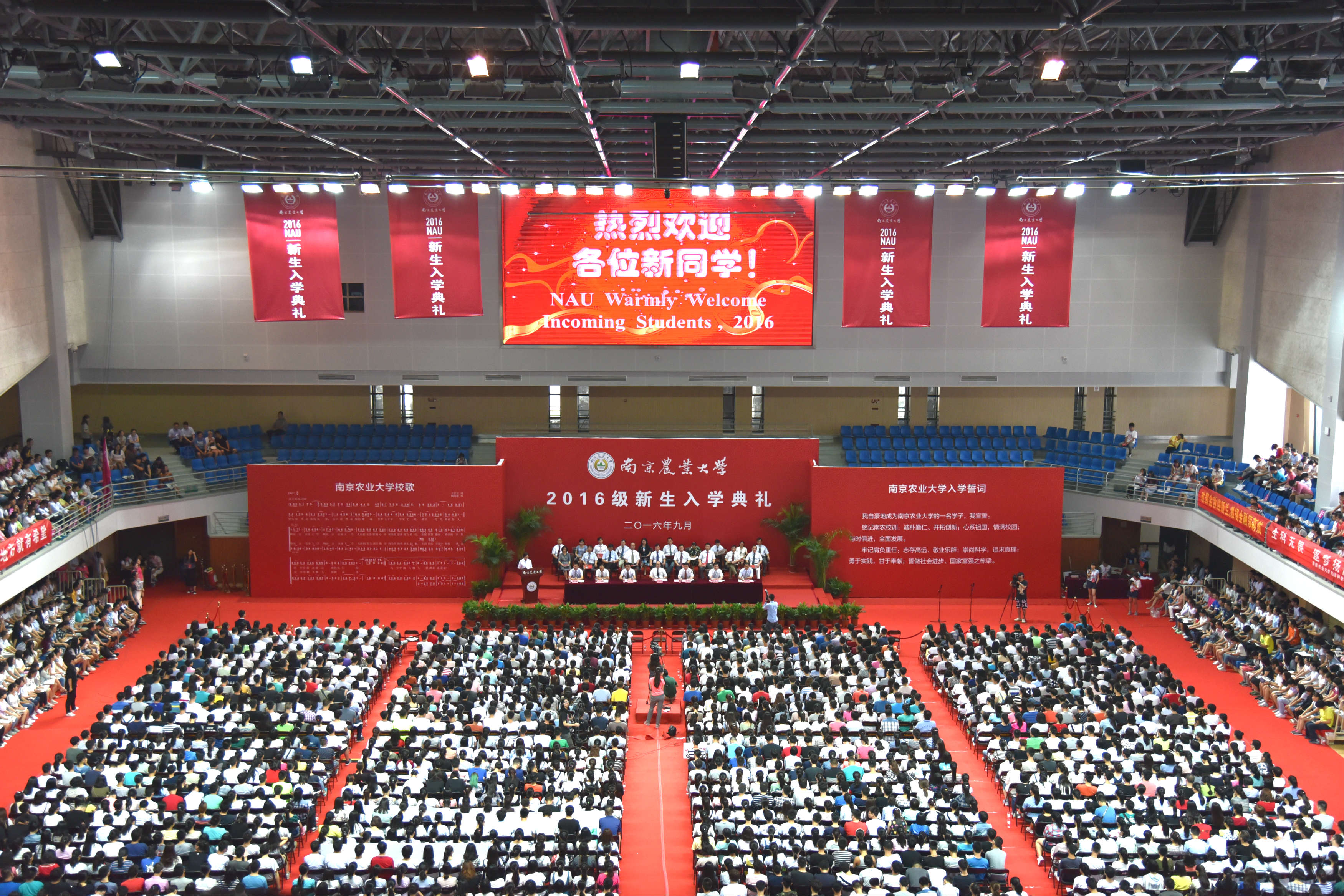 9月4日上午,学校2016级本科新生入学典礼在校体育中心举行。校领导及各学院、有关部处主要负责人出席本科生新生入学典礼,4200余名新生参加典礼。院长朱晶教授作为教师代表发言,她向在场新生提出了三点希望,并寄语新生“诚朴勤仁、怀远天下,以农为根、砥砺前行。”