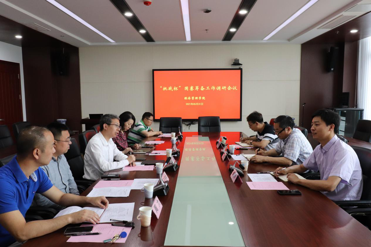 5月31日上午,校党委副书记刘营军、校团委书记谭智贇、校团委双创实践事务主管魏威岗一行来beat365官网调研“双创”暨“挑战杯”国赛筹备工作。院党委书记姜海、院长朱晶、院党委副书记宋俊峰、副院长林光华,“挑战杯”指导教师周力,院办公室主任夏德峰,院团委书记李扬参加。会议由姜海主持。