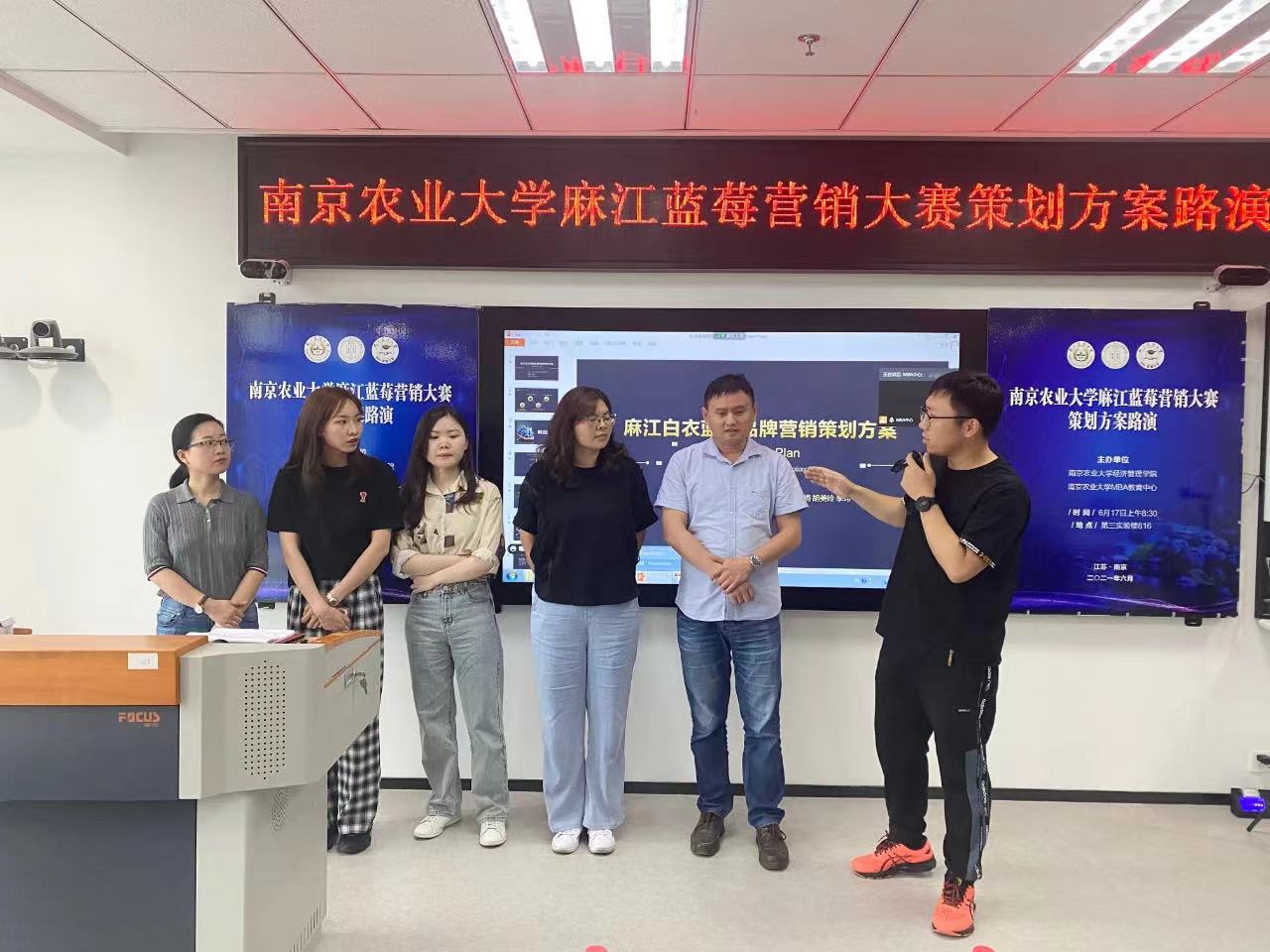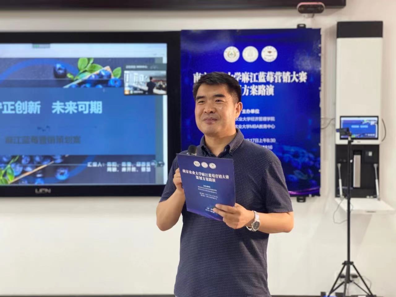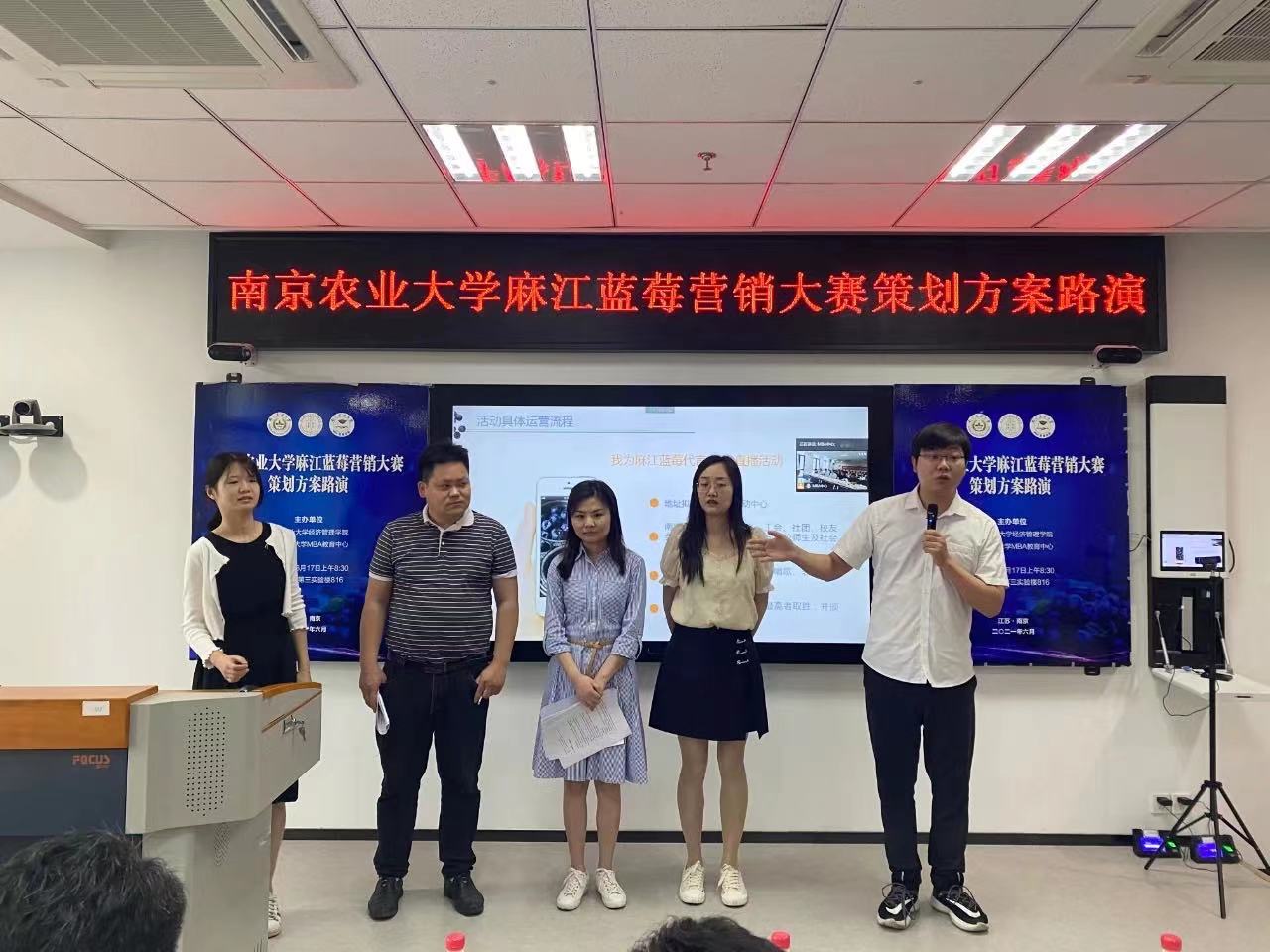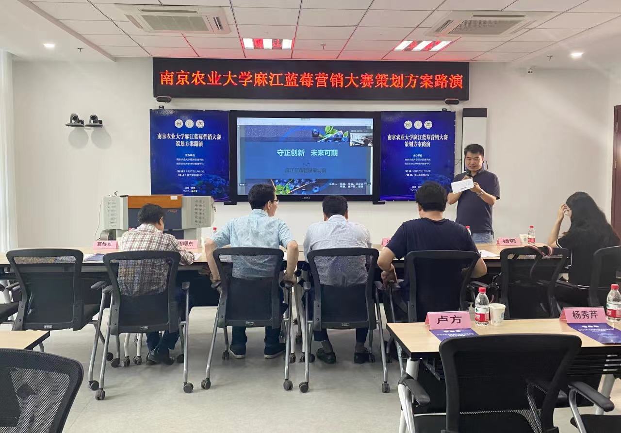 6月17日上午,beat365正版唯一官方网站麻江蓝莓营销大赛策划方案路演在卫岗校区第三实验楼举行,本次活动由beat365正版唯一官方网站、MBA教育中心主办。中共贵州省麻江县县委副书记、贵州大学管理学院院长李烨,beat365正版唯一官方网站社会合作处处长陈巍,beat365正版唯一官方网站研究生工作部部长姚志友,江苏广电总台融媒体新闻部记者徐华峰,beat365正版唯一官方网站周曙东教授、副院长耿献辉教授、葛继红教授、杨璐副教授等专家出席并担任点评嘉宾, 30余名MBA学员组成5个策划团队参加活动,活动由副院长耿献辉主持。