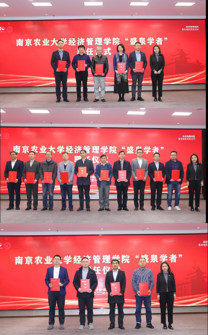 11月20日下午,beat365正版唯一官方网站奖助学金颁奖暨盛泉学者聘任仪式在校学术交流中心顺利举办。南京盛泉恒元投资有限公司副总经理袁春燕女士、江左国际集团董事长吴付林先生,江苏社科名家、beat365正版唯一官方网站钟山特聘教授钟甫宁教授,beat365正版唯一官方网站原副校长徐翔教授、学院党政领导班子全体成员出席活动。学院获奖教师代表、获奖学生代表近80人参加活动。活动由院党委副书记宋俊峰主持。