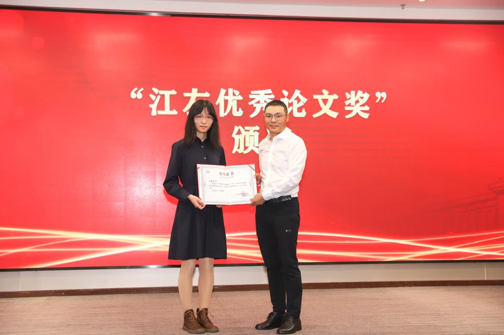 吴付林先生为“江左优秀论文奖”颁奖并发言。他介绍“江左优秀论文奖”已举办两届,育人成效逐渐显现,他作为校友能够为母校、母院高质量人才培养贡献自身力量,感到十分荣幸。同时祝愿母校建校120周年生日快乐。