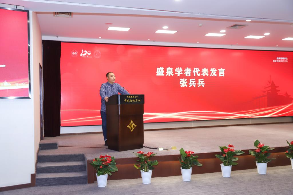 青年教师张兵兵副教授作为盛泉学者代表发言。他感谢学院的关心支持、前辈的谆谆教导。他表示作为青年教师将以最饱满的精神状态、最积极的工作热情投身到教学科研中。