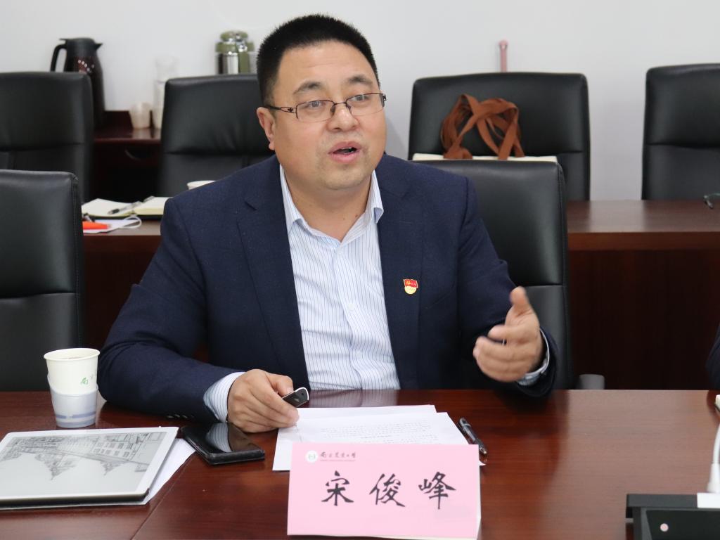 院党委副书记宋俊峰从毕业生基本情况、当前就业落实情况和就业举措等方面进行工作汇报,并就目前存在的问题提出优化思路。