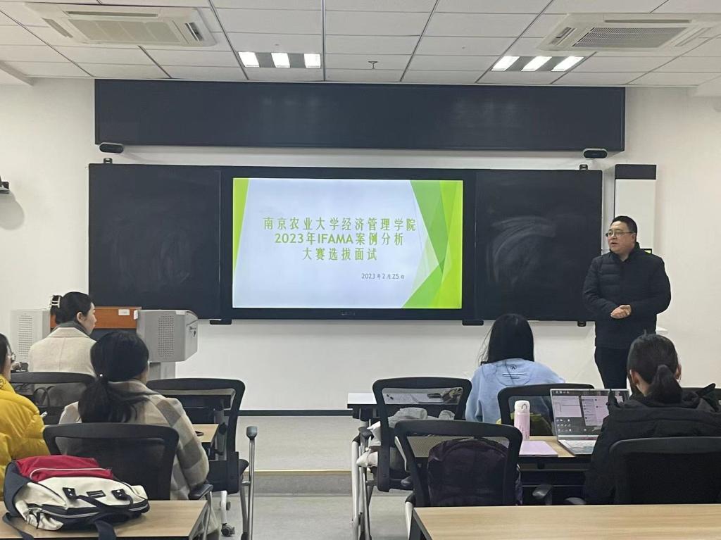 2023年2月25日,2023年IFAMA案例大赛面试选拔活动在第三实验楼816举办。院党委副书记宋俊峰、管理系蔡忠州教授、杨璐副教授、丁雪老师、江苏省农业科学院农业经济与发展研究所王越助理研究员以及19名本科生和硕士生参加,会议由蔡忠州教授主持。
