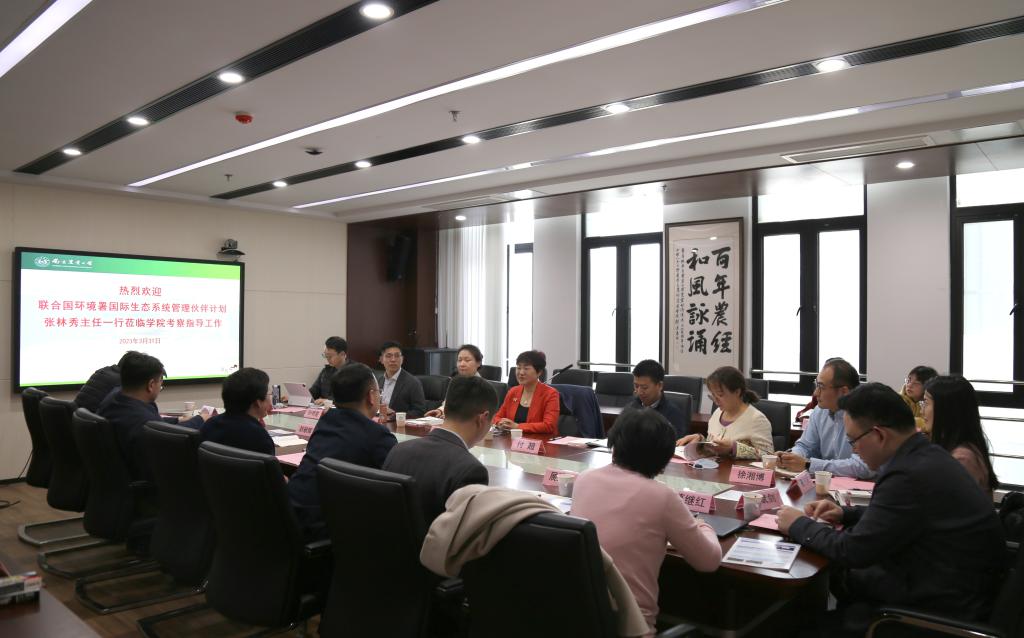 3月31日下午,联合国环境署国际生态系统管理伙伴计划(以下简称UNEP-IEMP)主任张林秀一行来beat365官网交流访问,学院党政领导班子全体成员及部分教师代表出席会议,会议由院长徐志刚主持。