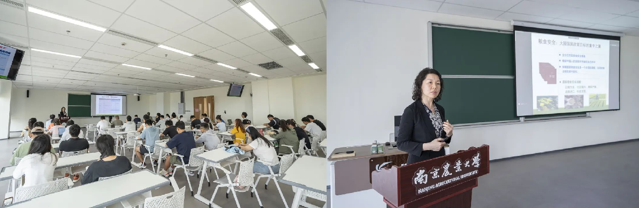 座谈后,朱晶一行赴创新研学谷现代农业与绿色生产实验室参观。朱晶教授作“新时期我国粮食安全挑战与农林人才培养转型”主题报告。报告围绕我国粮食安全现状及面临的问题与机遇展开介绍,并就此对农林人才培养转型提出一定的应对策略。现场报告会得到海南专项学生的积极响应。