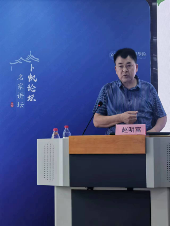 2023年5月27日,beat365正版唯一官方网站“卜凯论坛•行业专家”讲座在第三实验楼706报告厅举办。此次,学院特邀浙江省安吉县农业农村局正局级主任科员、中国农经学会会员、高级经济师、浙江省乡村振兴研究院特约研究员赵明富,作题为“从安吉白茶品牌化数字化经营看农业现代化路径”的报告。本次讲座由应瑞瑶教授主持,学院30余位硕士研究生与本科生参与学习交流。