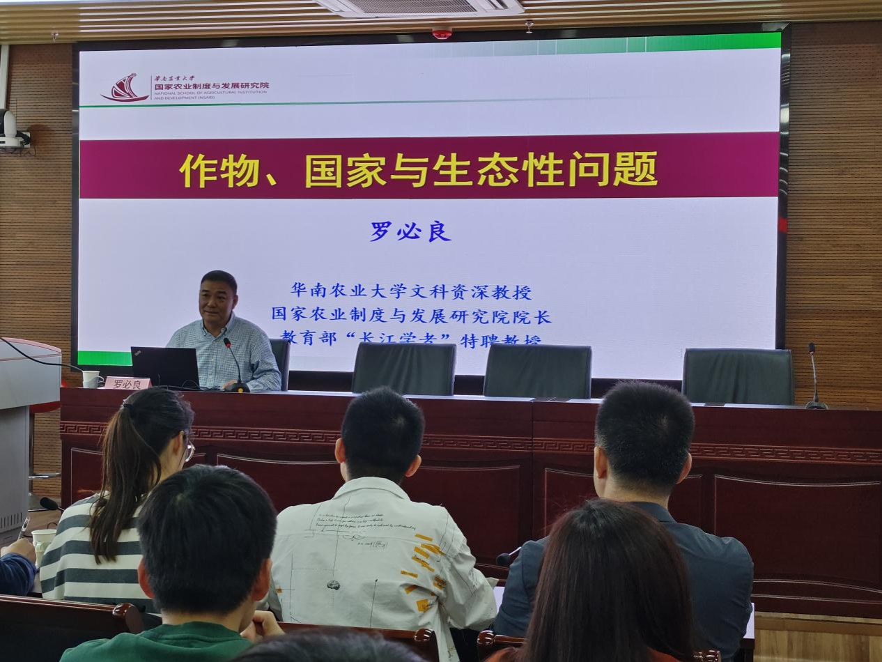 10月14日下午,学院“卜凯论坛•校友讲坛”第2期在第三实验楼706报告厅举办。此次,学院特邀华南农业大学文科资深教授、国家农业制度与发展研究院院长、教育部特聘教授罗必良作题为“作物、国家与生态性问题”的学术报告。学院书记孙雪峰主持报告会,纪月清教授担任互动嘉宾,学院师生80余人现场参加。